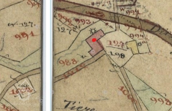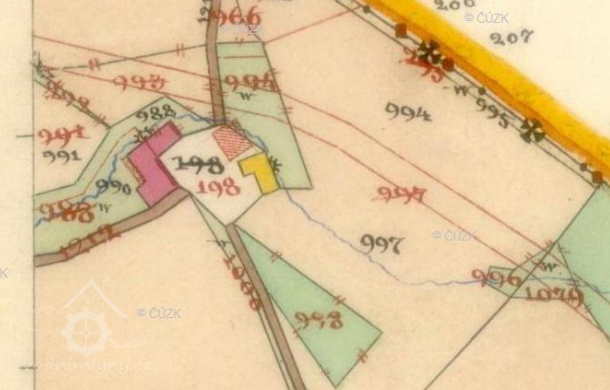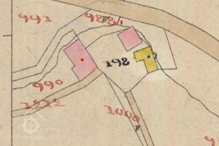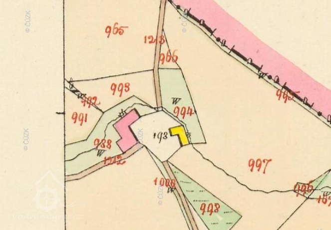 Na originální mapě stabilního katastru vyznačena další budova mezi pilou a mlýnem. Byla postavena pravděpodobně ve 2. polovině 19. století.
