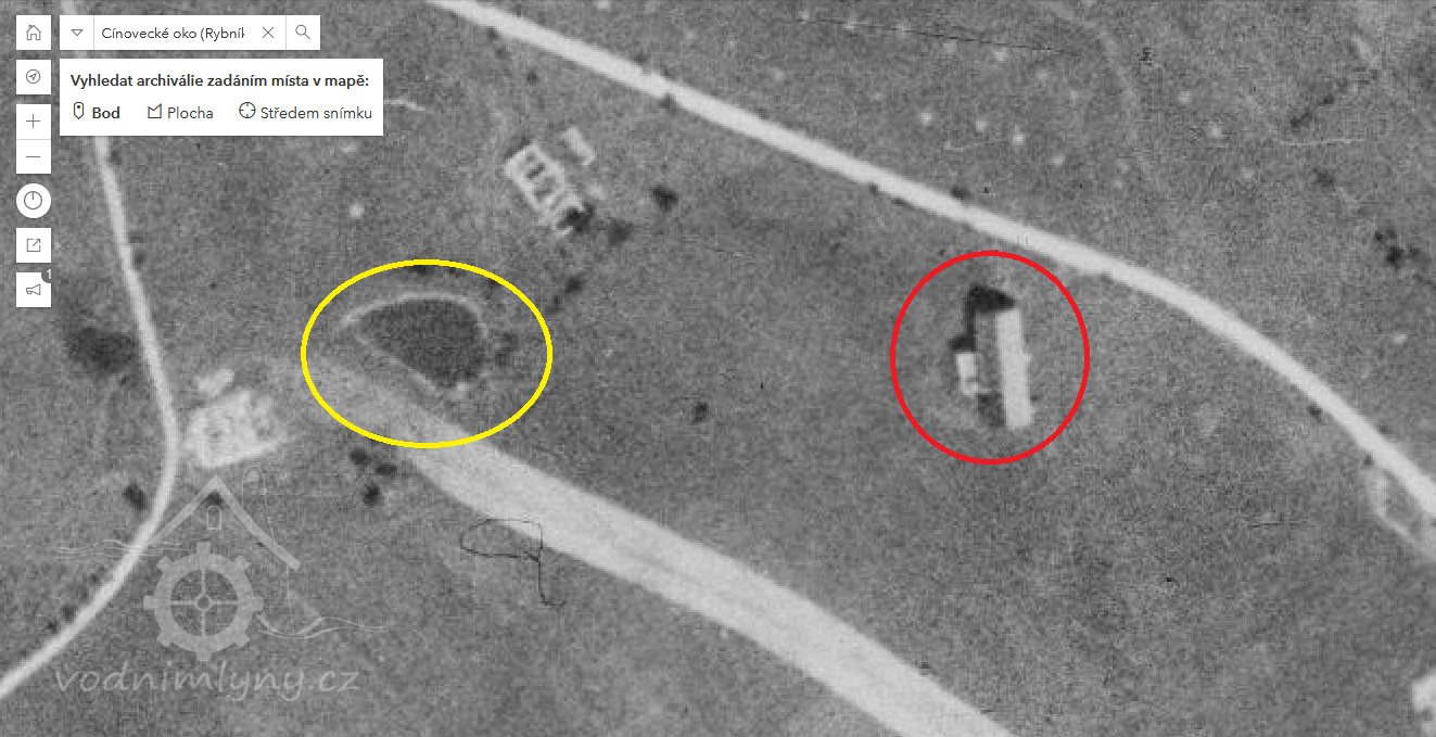 Zbořený mlýn nacházející se 250 m na východ od přírodní zajímavosti Cínovecké oko, na jih od silnice. Od místa nyní vede cesta osázená mladou alejí