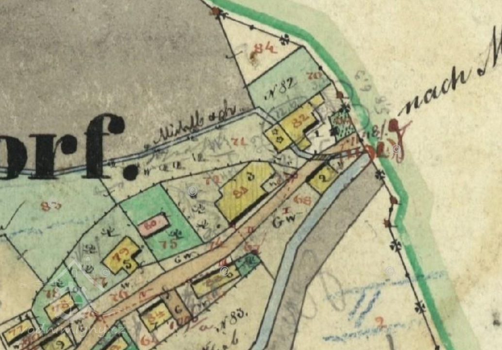 1757 Tereziánský katastr - 2 vrchnostenské mlýny v Srbské