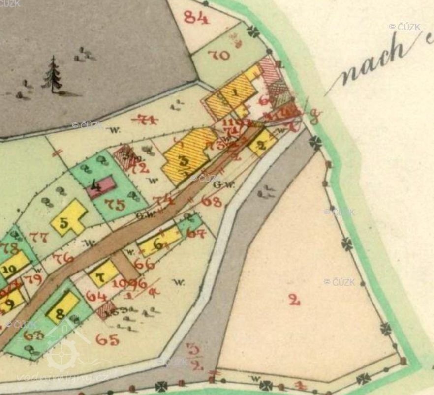 Popis1930: 1 kolo na svrchní vodu, hltnost 0,063 m3/s, spád 7,7 m, výkon 4,19 HP