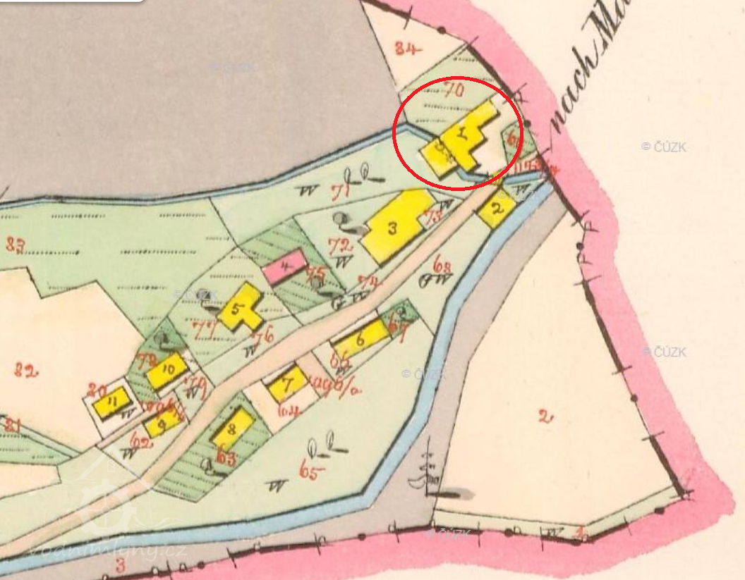 Zaniklý mlýn na saských hranicích, za I. republiky zde sídlila celnice, 23. 9. 1938 zákeřně napadená bojůvkou Freikorpsu, přičemž padli příslušníci Stráže obrany státu Václav Čep, Josef Vojta a Bohumil Hošek, dnes zde stojí pomník.