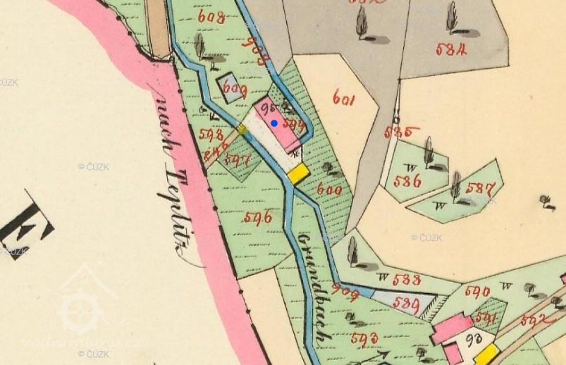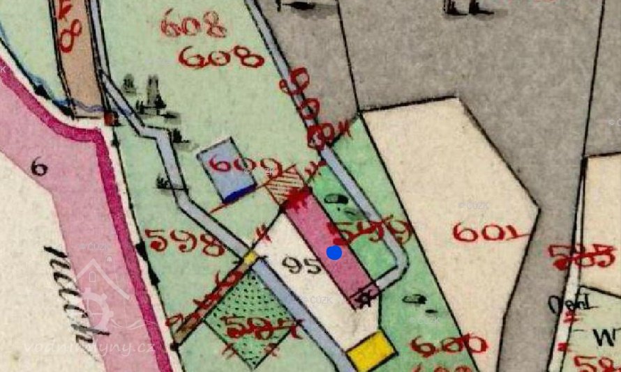 Popis1930 - 1 kolo na svrchní vodu, průtok 0,15 m3/s, spád 9,2 m, výkon 14,6 HP.