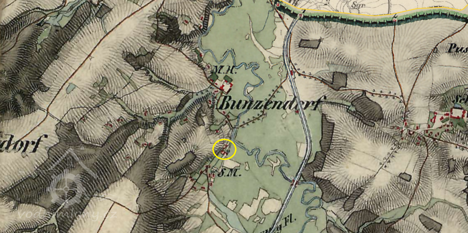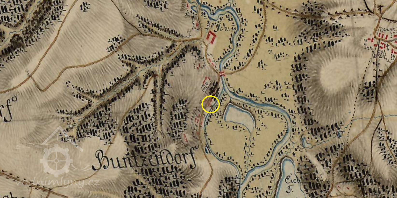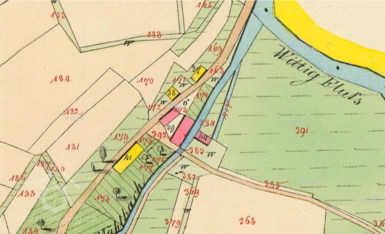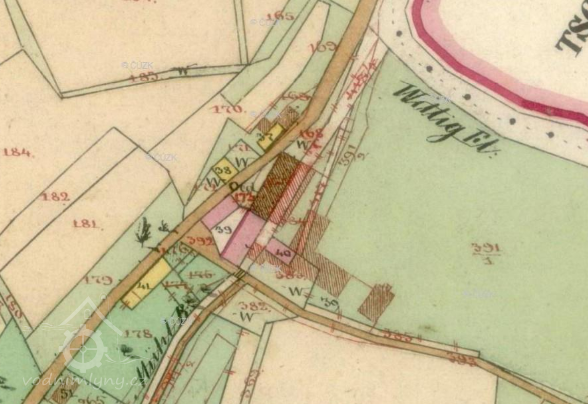 1757 Tereziánský katastr - vrchnostenský i poddanský mlýn