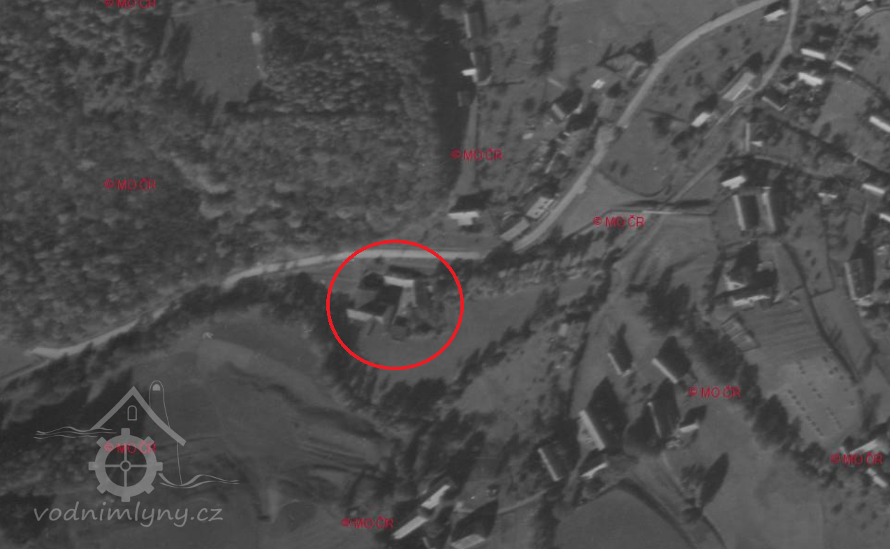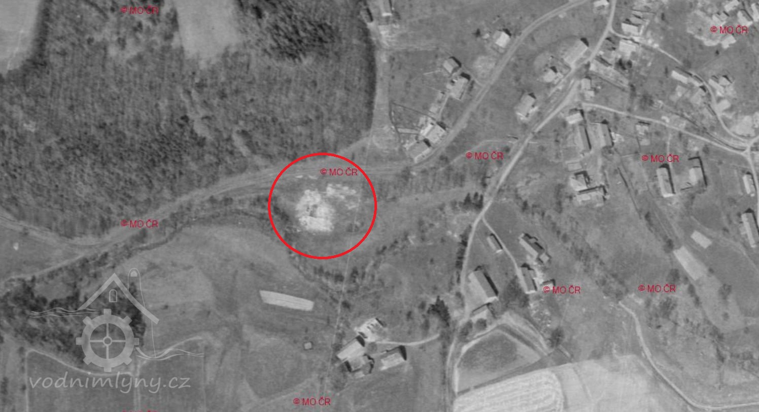Na jihozápadním okraji obce při silnici do Heřmanic stával v údolí Olešky vodní mlýn (objekt čp. 23). Řadil se k nejstarším domům v obci. Neví se, kdy vznikl, ale k roku 1651 je udáváno, že ve mlýně je jeden mlecí stroj. Pohánělo ho dřevěné vodní kolo o průměru 7 metrů, na které byla přiváděna s vrchu voda z říčky Olešky náhonem dlouhým asi 1 kilometr. K posledním mlynářům patřil Stanislav Zajíc, jenž se během září roku 1946 přestěhoval do jiného objektu v obci. Následně se mlýn zastavil a po dobu dalších deseti let byl opuštěn. V letech 1959 až 1960 při tak zvané Demolici pohraničí došlo k odstřelení mlýna spolu s dalšími prázdnými domy v obci, které provedla vojenská jednotka. Poté byl mlýn srovnán se zemí a na jeho místě vznikla neřízená skládka odpadů, která byla zrušena až roku 1997.