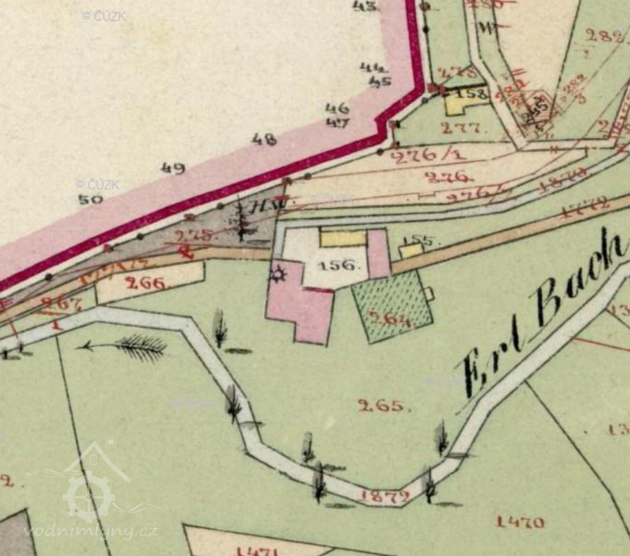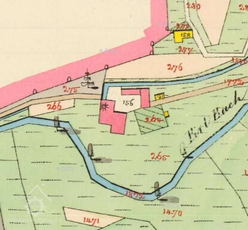 Velký mlýn středověkého původu, 1959-1960 odstřelený a na mlýništi zřízena skládka odpadků.