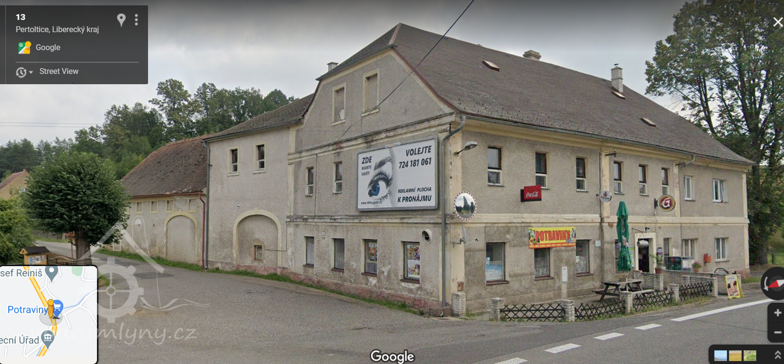 Někdejší panský mlýn, příslušenství sousedního panského dvora, v I. pol. 19. stol. přestavěný na dodnes funkční zájezdní hostinec.