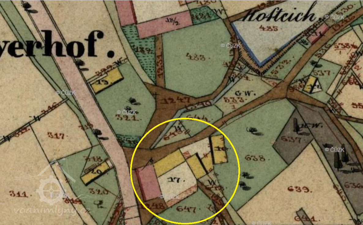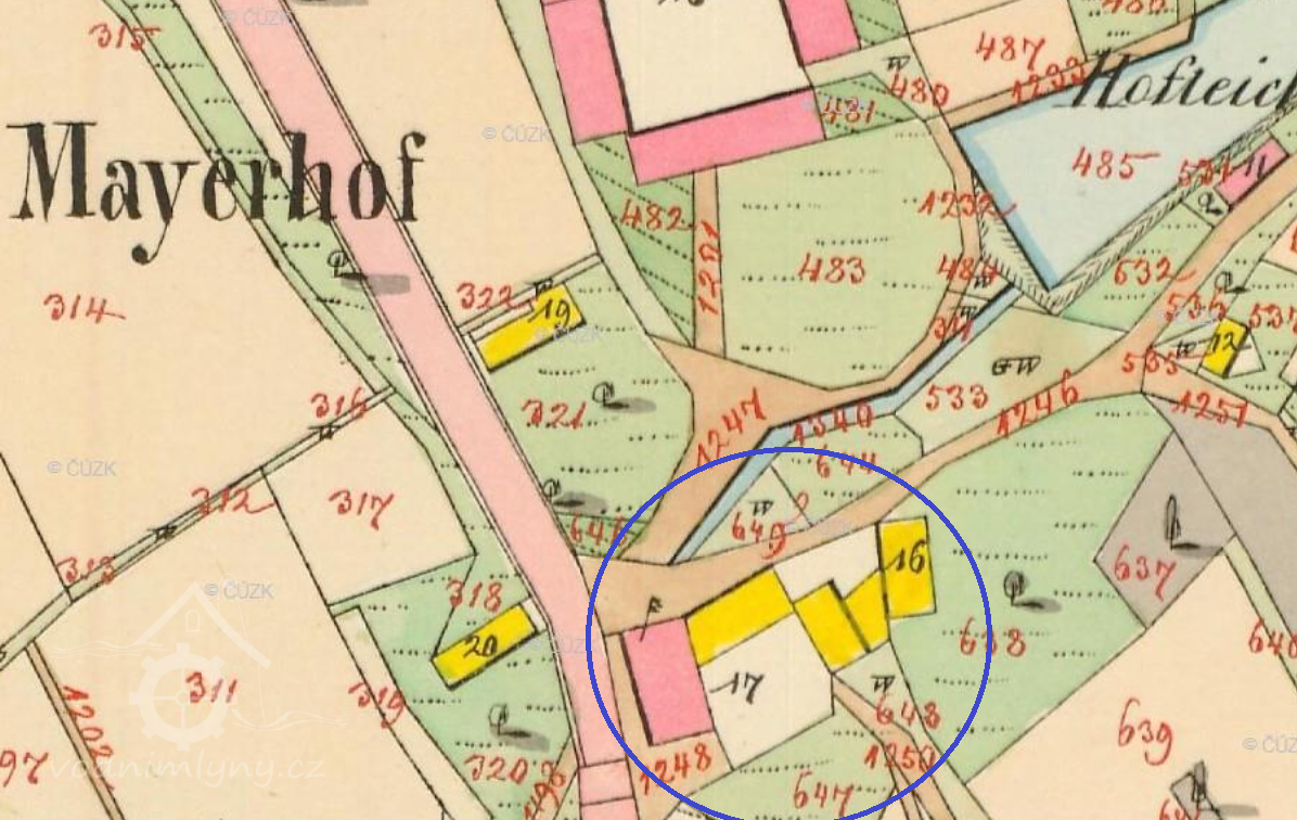 1757 Tereziánský katastr: poddanský  a vrchnostenský mlýn