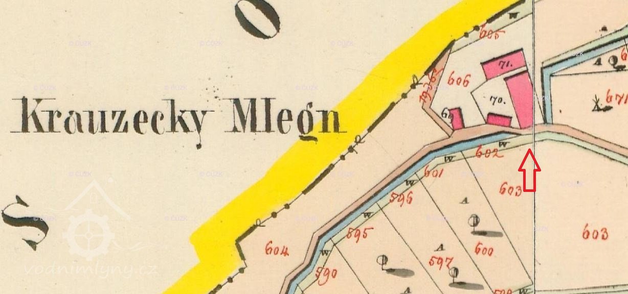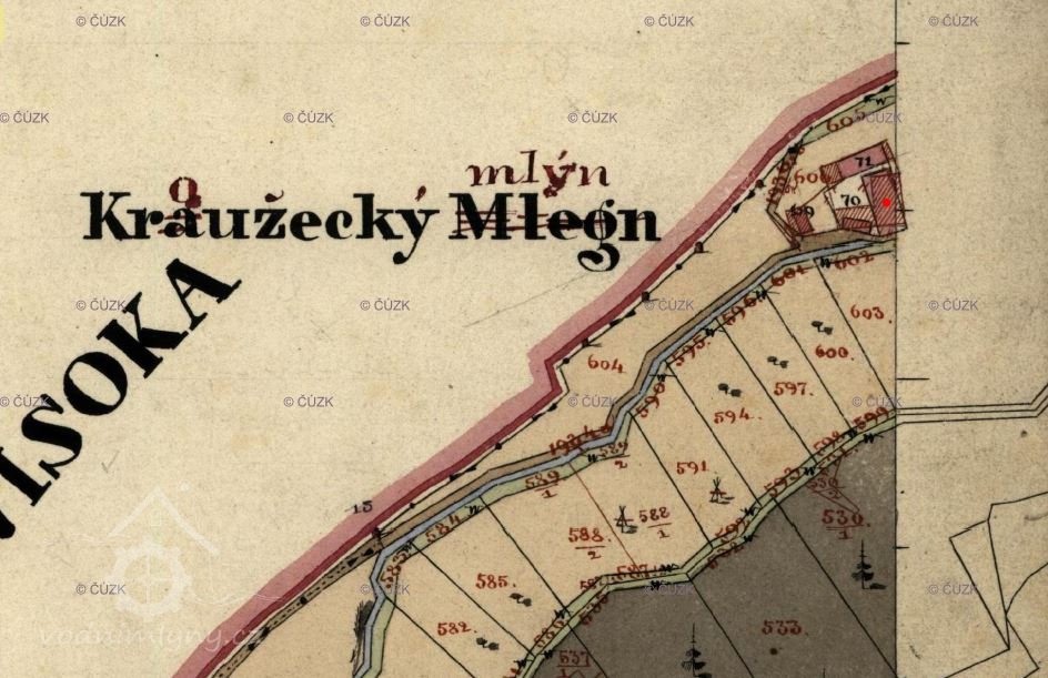 V roce 1930 je uváděno jako pohon mlýna 1 vodní kolo na vrchní vodu s průtokem 0,106 m3/s, výkon 4,02 HP.