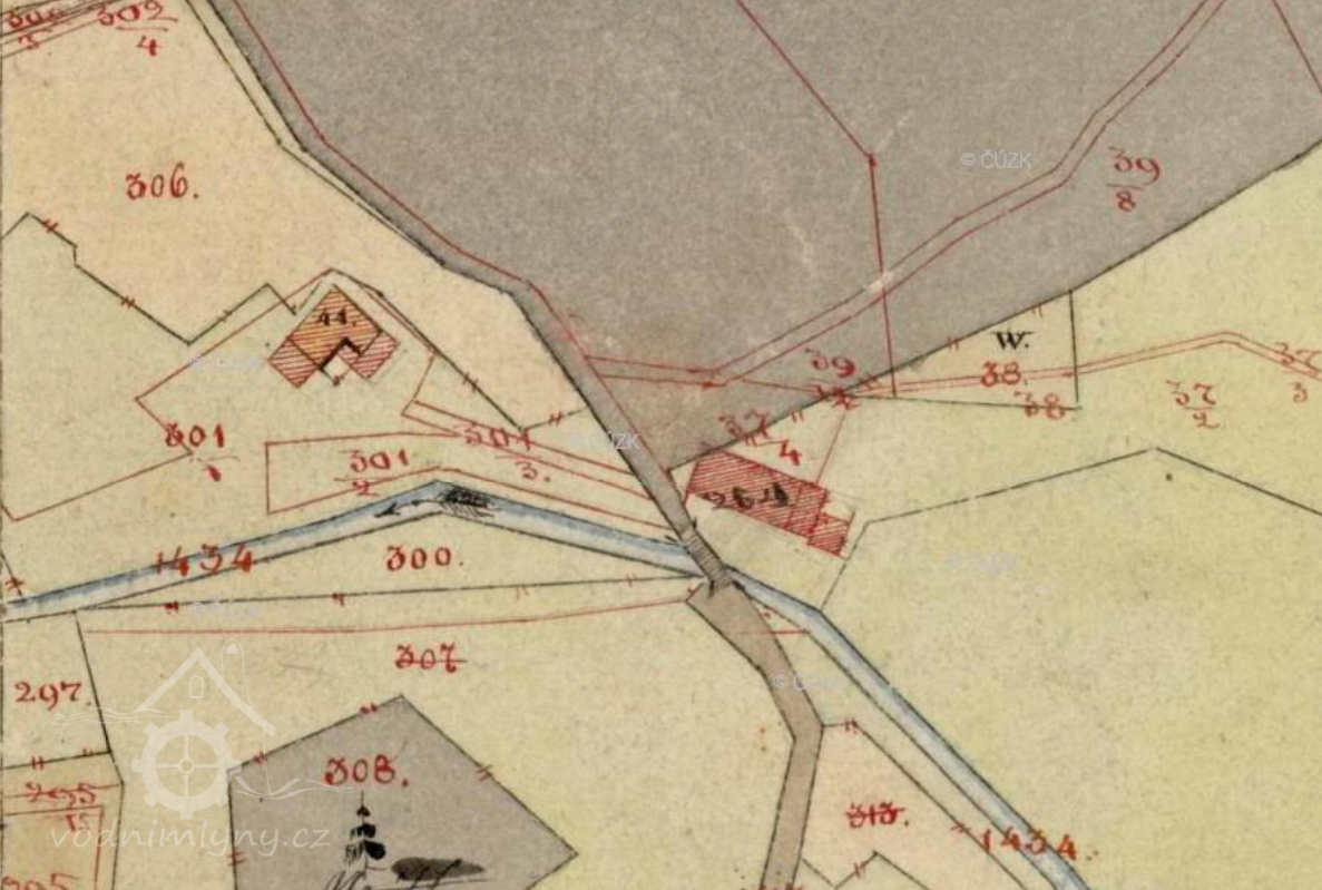 Popis1930: 1 kolo na svrchní vodu, hltnost 0,052 m3/s, spád 5 m, výkon 2,9 HP