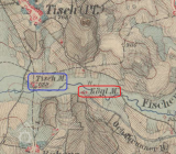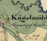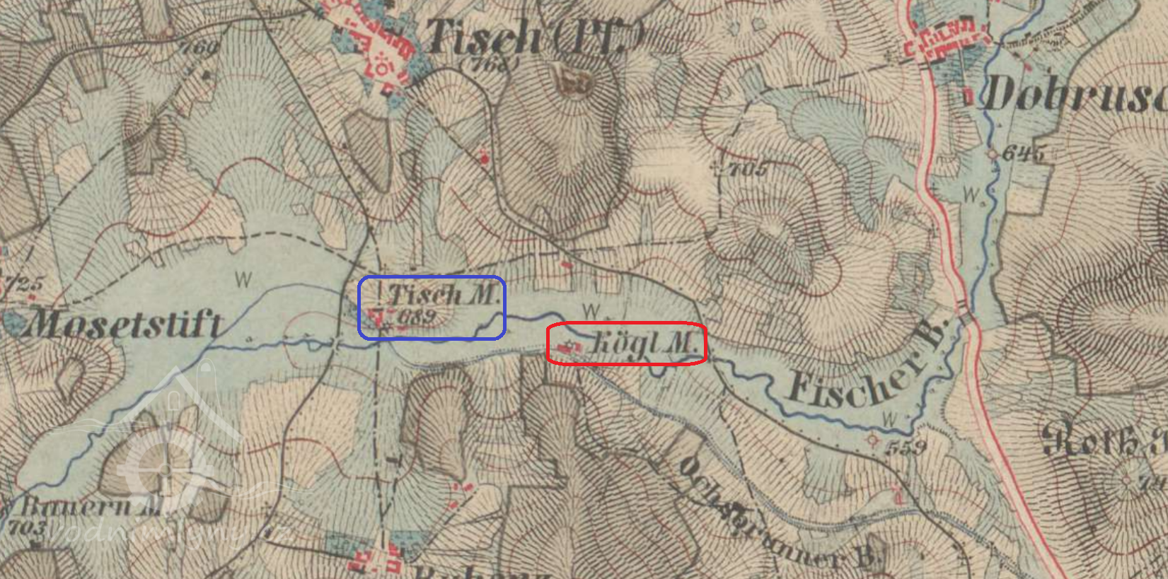Mlýn v katastrálním území Ktiš/Tisch/ je zobrazen na mapě Stabilního katastru :Čechy-3678-1, mapový list č. 015/ ad 004/. Celkem zde byly tři objekty, dva z nich hospodářská stavení /stodoly/ na st.p. 36/1 a st.p.36/2. Mlýn/obytné a hospodářské stavení /měl čp. 30/ st.p.37.