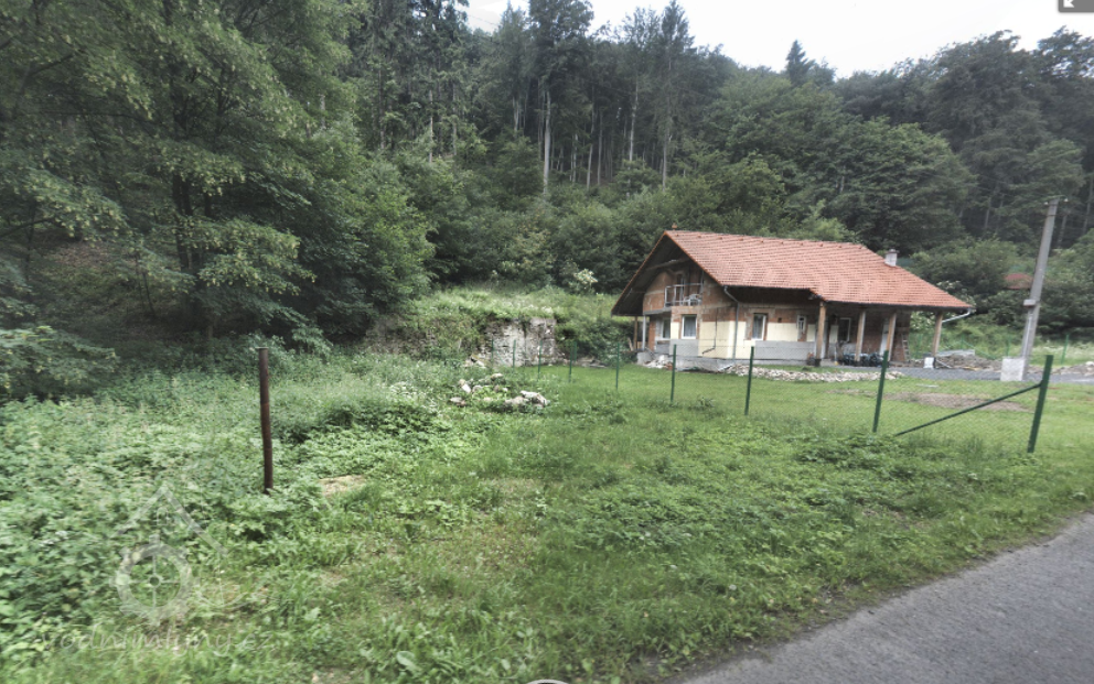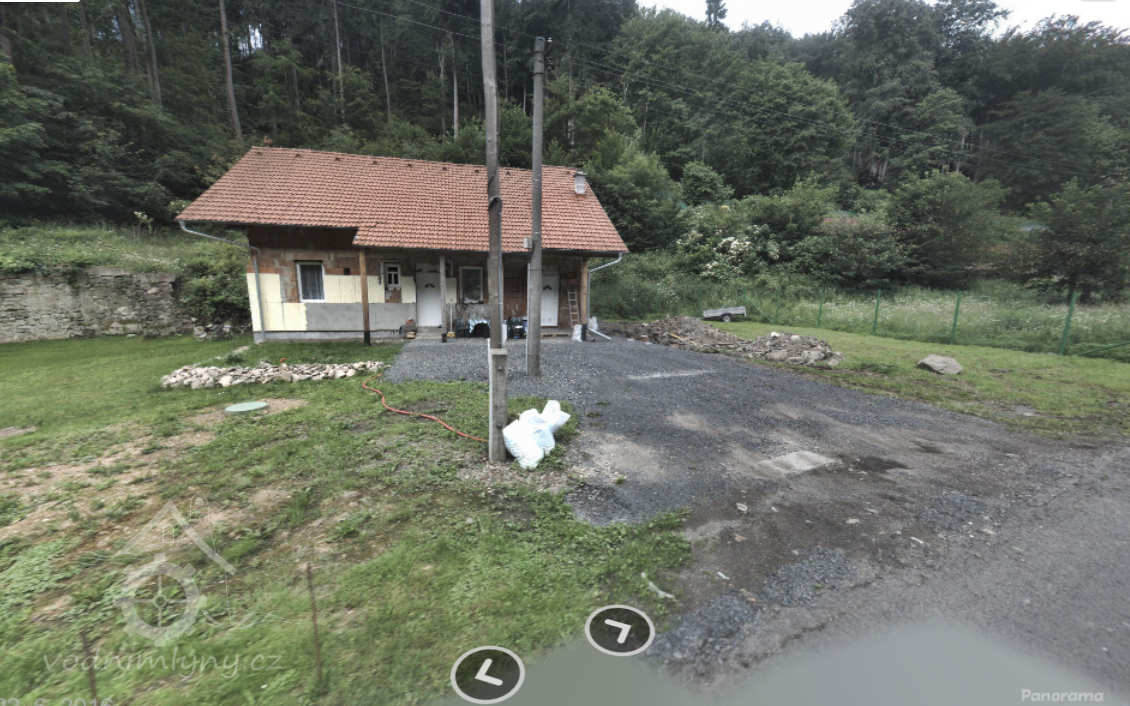 Zbořený mlýn, na části mlýniště postaven rodinný domek.