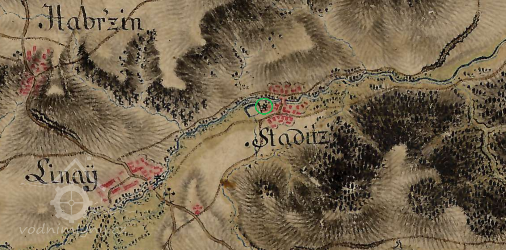 Popis1930: 1 kolo na spodní vodu, hltnost 0,877 m3/s, spád 2 m, výkon 7 HP