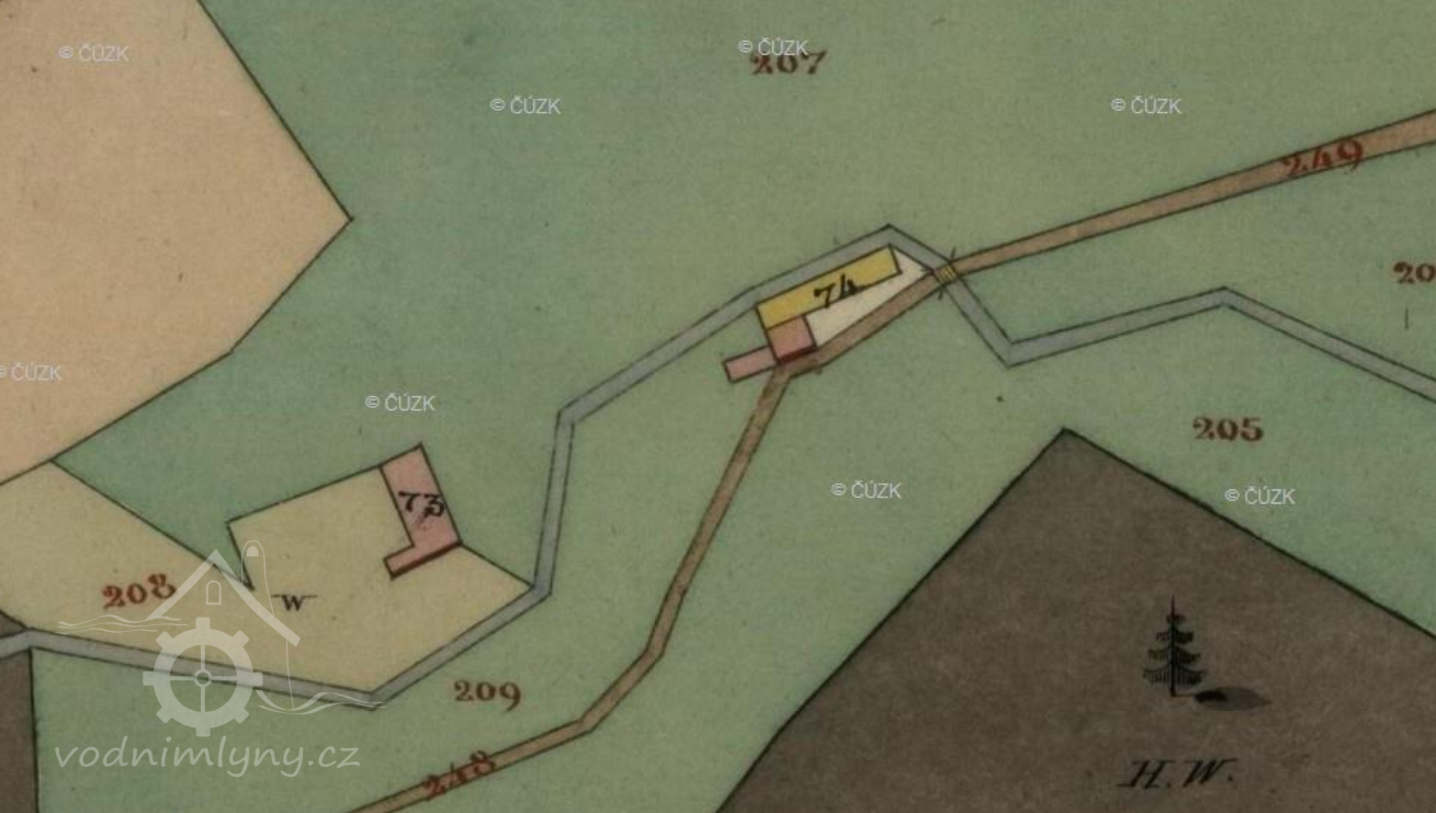 Stavba byla zakreslenana mapě Stabilního katastru /viz.snímky výše./