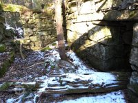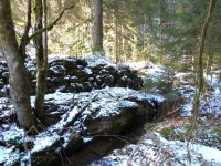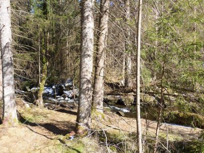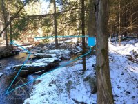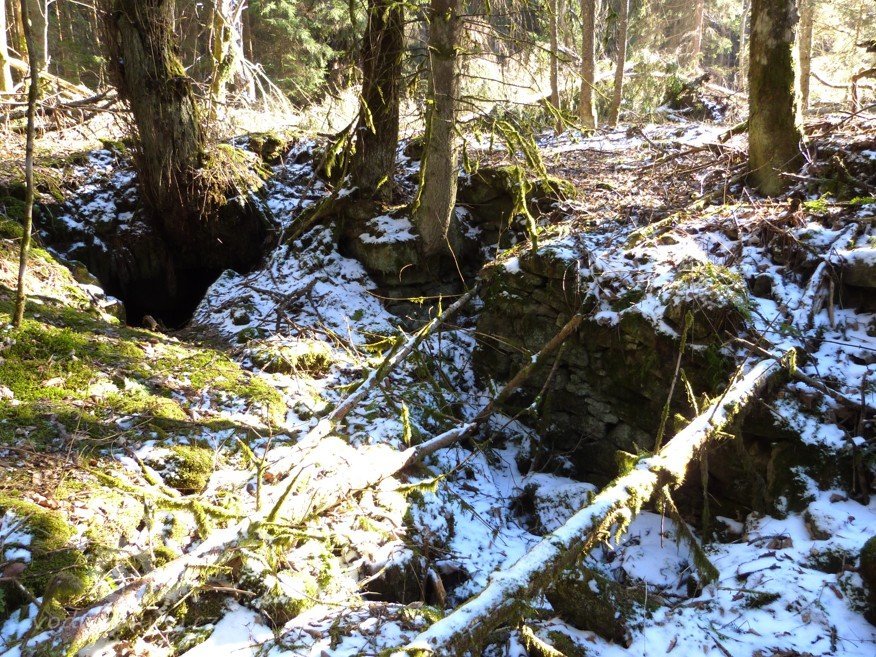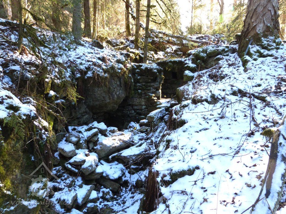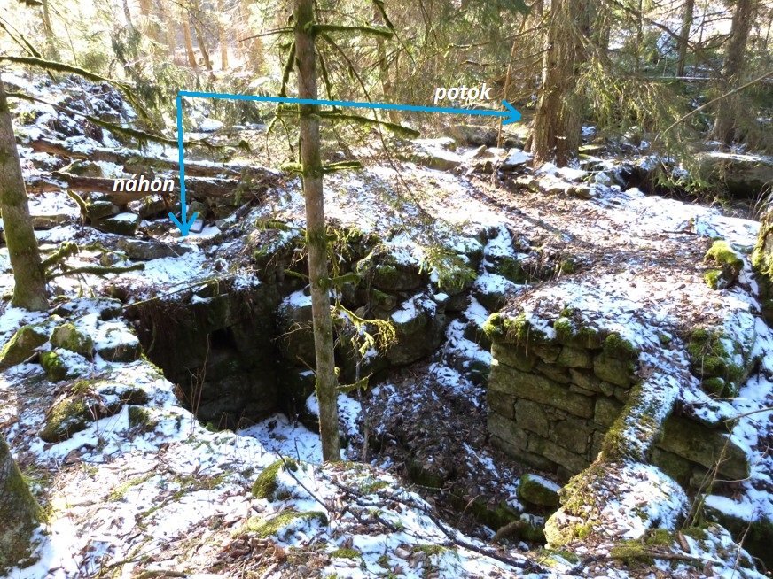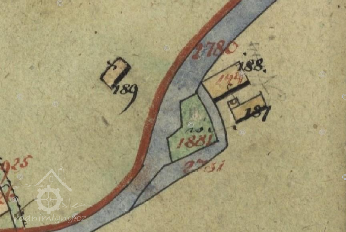 Zpět k nejstaršímu Hammermühle. Byl vystavěn v nadmořské výšce 798 metrů při pravém břehu potoka. V jakém roce byl zahájen mlýnský provoz mi není známo, ale jisté je, že Mathias Harant jako královácký svobodník v roce 1737 již v Hrádkách bydlel. Mlýnský náhon po přibližně 30 metrech pozvolna přecházel v menší akumulační nádrž. Od nádrže náhon v pravém úhlu měnil směr ke zhruba 20 m. vzdálenému vodnímu kolu Hammermühle, chráněnému v lednici (kamenný přístavek, který je vidět na fotech) při jz štítu mlýna. Před lednicí jsou též vidět vantroky s přepadem. Ve svahu na protějším břehu, vlevo u cesty od Srní, asi 40 metrů sz od mlýnské budovy, byl sklep - vchod do něj je stále zachován. Z cesty vedoucí od Srní odbočovala pěšina k malé lávce přes potok přímo před mlýnem. Cesta od Srní dále pokračovala svahem dolů k Vydře (mj. z této cesty se odbočovalo také k lesnímu koupališti vzdálenému 100 m. severovýchodním směrem od Hammerschmiede) a po jejím levém břehu vedla k Brückmühle (viz lokalita "Kramlův mlýn"). V minulosti ke mlýnu vedla cesta pouze po druhém břehu, která odbočovala z hlavní cesty Srní-Modrava doleva hned za mostem (v místě nynějšího silničního mostu) kolem Manimühle. Kovárna při mlýně (pravděpodobně budova níže po po proudu - ale není to zcela jisté - různé údaje se totiž rozchází) fungovala prokazatelně již v roce 1851. Měla svůj vlastní náhon, který začínal před budovou mlýna. První zdejší mně známý hamerník byl Johann Hofmann. Vodní kolo bylo umístěné v lednici při severní straně kovárny směrem k potoku. Jak je zachyceno v orig.mapě stab. kat. (viz obrázek č. 1 v sekci "Ostatní"), v čase došlo ke zvětšení mlýnské budovy jv směrem od potoka, zániku objektů na st.p. 187 a 189 a vzniku nových staveb, čímž byla st.parcela 188 postupně rozdělena až na pět dílů - viz příspěvek p. Vlčka v komentářích. Obytný objekt s kovárnou měl čp. 66 (pův. mlýnské čp. 144) a vedlejší budova zahrnovala obytnou část čp. 167 a mlýnici.