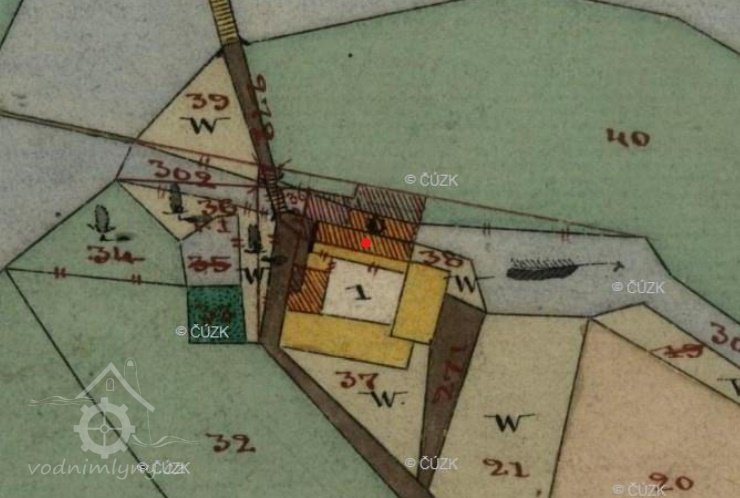 Popis1930 - 1 kolo na spodní vodu, průtok 1,75 m3/s, spád 1,10m, výkon 8 HP.