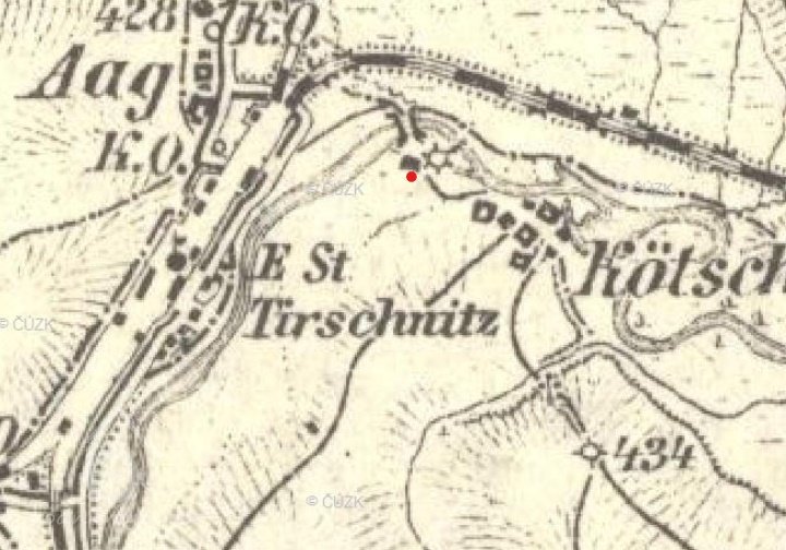 Na starší verzi III. vojenského mapování vyznačena pila.