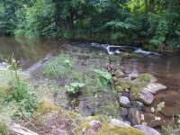 1872: splav dřevěný 15,8 x 3,2 m se dvěma stavidly po 1 m na začátku náhonu o délce 55 m. Ke kolům na spodní vodu voda přiváděna dvěma žlaby širokými 82 cm o hloubce 70 cm a žlabem jalovým 1 m širokým.