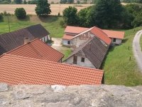 Strana 3: Panství borotínské sestávalo ze dvorů Borotín, Mezno a Lhoty Bartošové. Dvůr borotínský býval celý ze dřeva zbudován, toliko ovčín byl z kamene. Teprve v 19. století byl přestavěn. Ku přestavbě jeho brán stavební materiál ze starého hradu, čímž památka ta velice utrpěla. Kolem roku 1880 sesula se část zdiva na straně jižní – jak posud veliký balván jeho ve stráni nade mlýnem toho svědkem, a tu byla na zakročení majitele mlýna pod hradem Václava Zelenky přinucena vrchnost opatřiti zdivo dvěma kamennými pilíři.