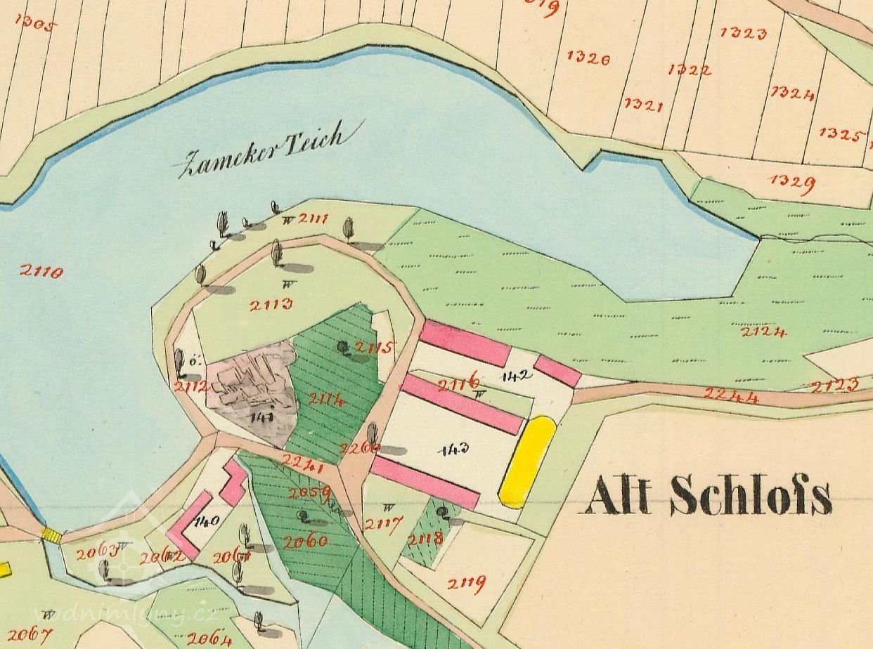 1557 mlýn a pila nad zámkem a rybník Podhradský, z kterého voda na mlýn jde