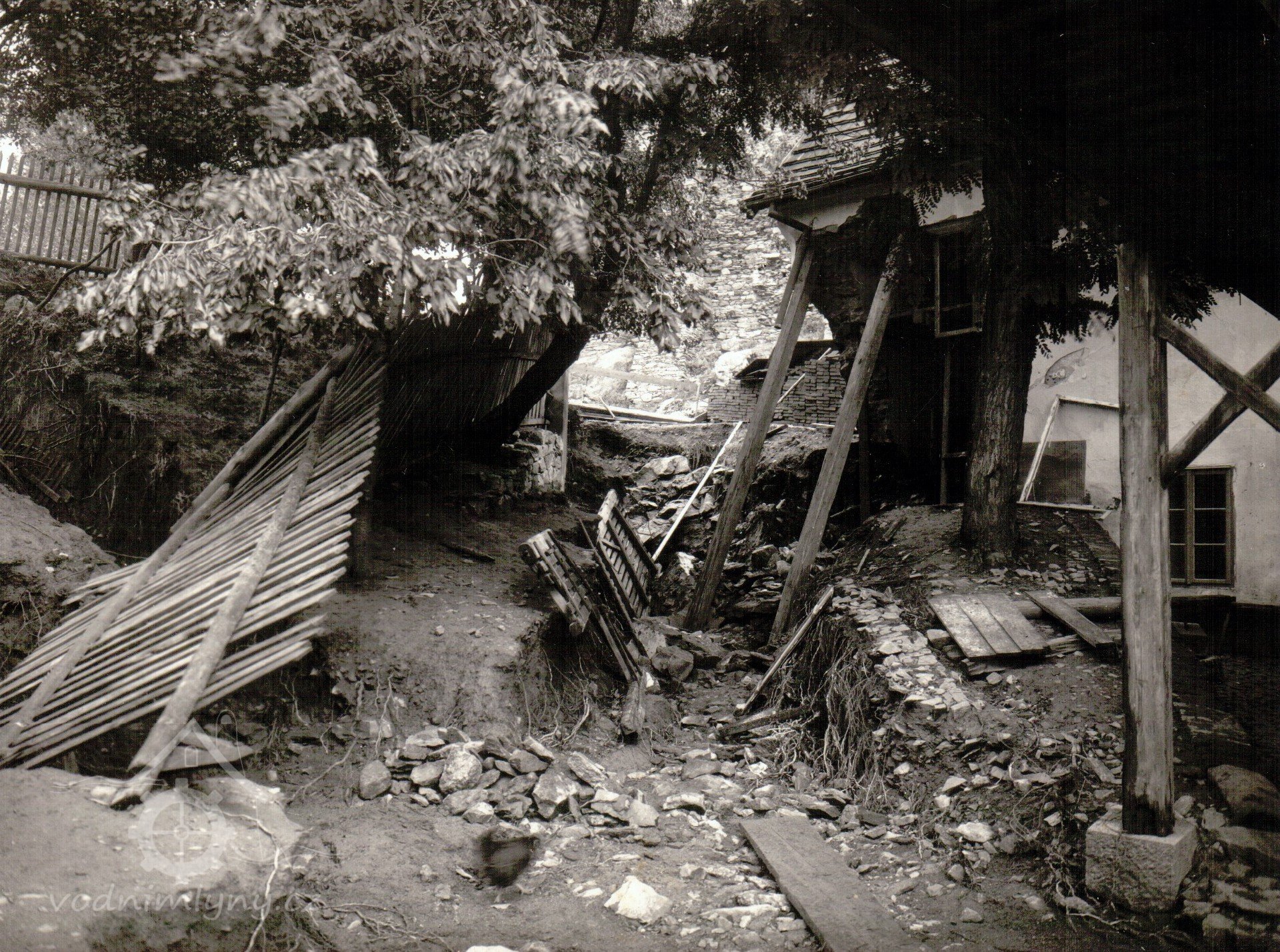 „Dne 26. srpna 1925 překvapila naši obec po dešti 1 ½ dne trvajícím povodeň, jaké není pamětníka... Nejhůře bylo na Starém Zámku. Tam včas stavidel nevytáhli a když brlení se ucpalo a voda se počala hrnouti přes hráz, ohromný tlak vody vytažení stavidel bránil. A voda valící se několika proudy přes hráz započala ničivé dílo. Dvůr i obydlí rázem zaplaveno, roh mlýnice podemlet tak, že se zřítil (voda vymlela tam jámu přes 2,5 m hlubokou), dvůr zanesen nánosem do výše 1 m. A jen to, že nadlidskému úsilí přispěchavších lidí podařilo se vypáčiti brlení i se stavidly a tak uvolniti proudům rozkaceného živlu cestu, zachránilo Zelenkův mlýn od úplného zdemolování..