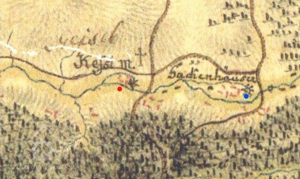 Pila je na indikační skice zakreslena na opačném břehu náhonu, než stojí mlýn.