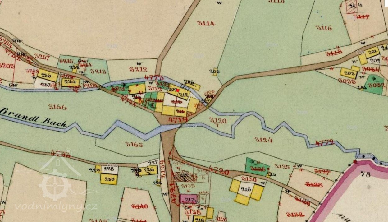Popis1930 - 1 kolo na svrchní vodu, průtok 0,095 m3/s, spád 3,6 m, výkon 3 HP.