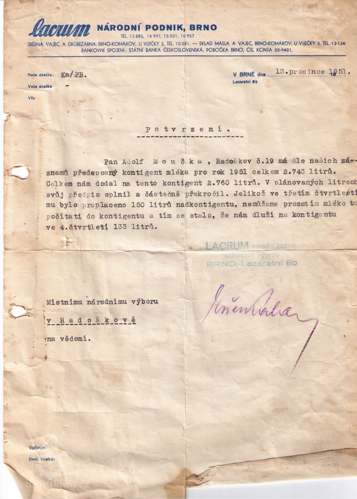Svatební smlouva z 11.11.1884 František a Marie Moučková. Od 3.11.1900 Adolf Moučka, jejich předkem je Jiří Moučka z Kavrdova mlýna viz. milan-moucka.webnode.cz.
