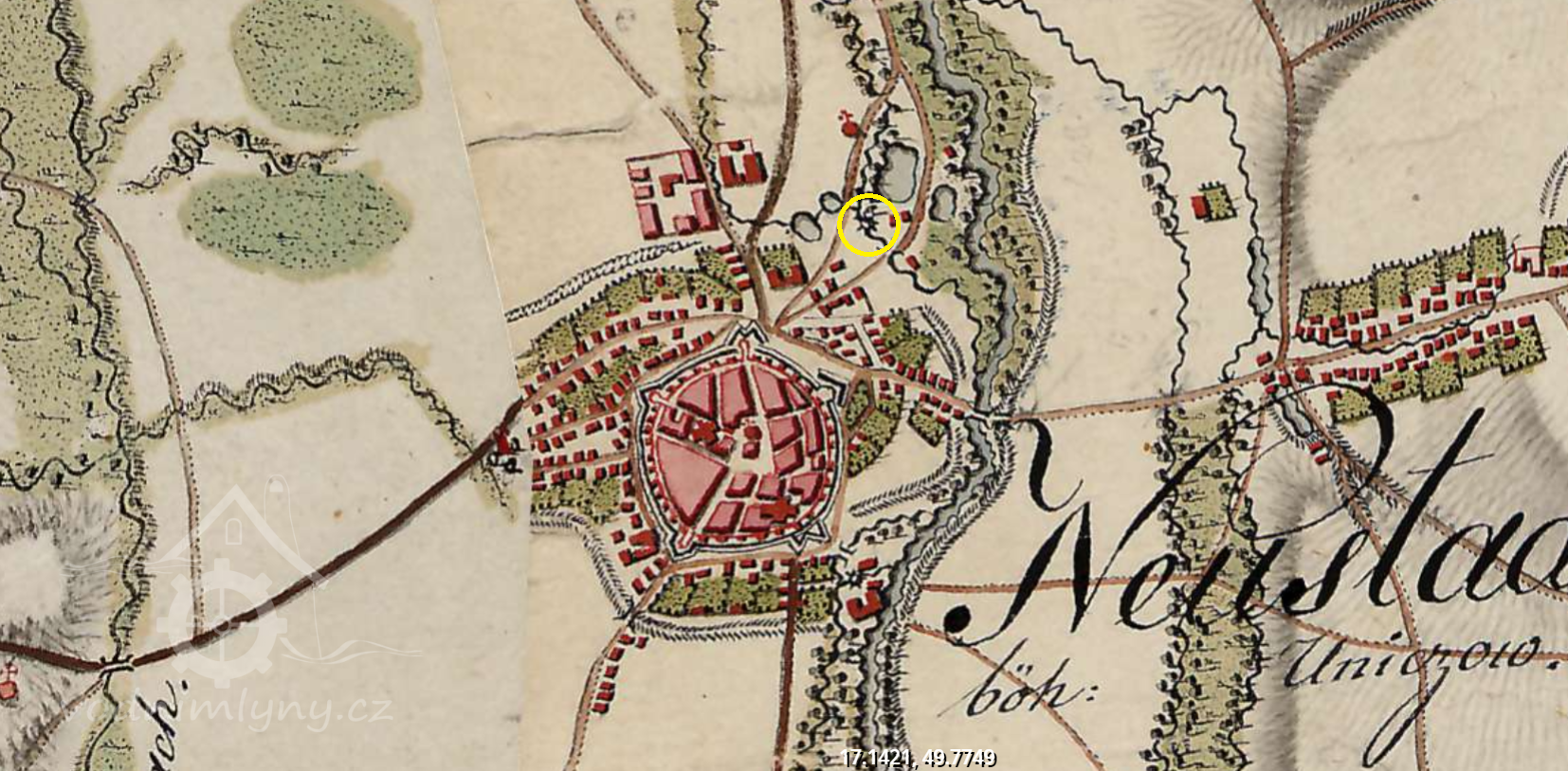 Eduard Jerzabek (1819–1895) zakoupil roku 1849 starší mlýn čp. 523 a rozvinul barvířskou dílnu svého otce v tiskárnu bavlněných látek, jejíž výrobky byly roku 1874 oceněny na třetí Výroční mezinárodní výstavě v Londýně a oblibu si získaly i coby součást hanáckých krojů. V letech 1875–1878 zakoupil první tři perotiny, stroje k potiskování tkanin plotnami, později také dva válcové tiskařské stroje a parní stroj 260 HP, jehož výkonu adekvátní komín v areálu stojí dodnes. Podnik převzali synové Eduard, Julius a Hubert, vnuk Herbert Jerzabek jej po válečné odstávce v letech 1920–1922 modernizoval, ale zároveň finančně vyčerpal a následně přivedl do konkurzu. Budova se dochovala po úpravách, provedených po druhé světové válce, kdy zde byla umístěna výroba veterinárních léčiv n. p. Spofa, později olomouckého Farmakonu, na niž navazuje i dnešní zdejší produkce léčiv a doplňkových krmiv.