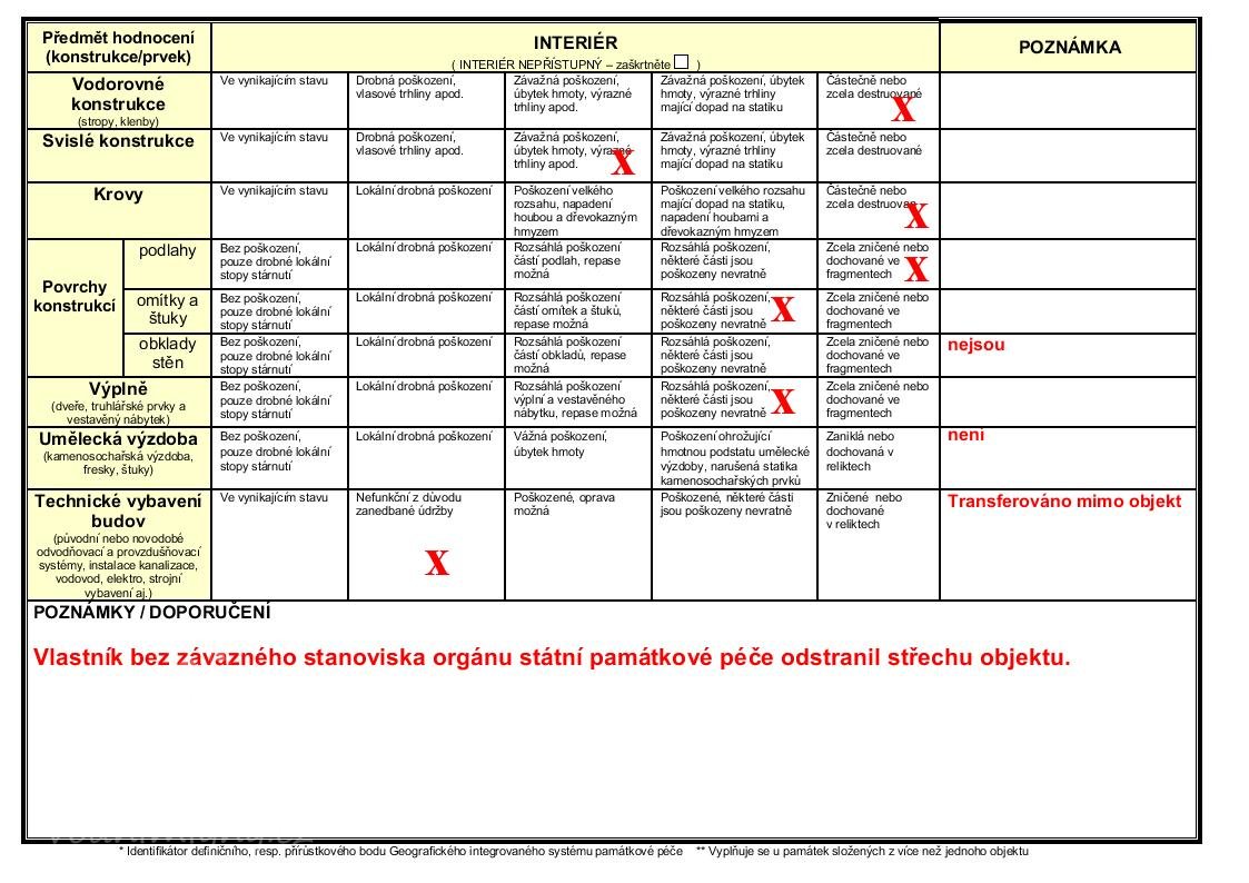 V předmětné věci se uskutečnila řada jednání a místních šetření (naposledy dne 12.7.2013). Na jejich základě konstatujeme, že vlastník při nakládání s objektem hrubě nerespektoval ustanovení zákona č. 20/1987 Sb. o státní památkové péči, ve znění pozdějších předpisů s odůvodněním, že objekt není kulturní památkou, neboť v katastru nemovitostí není vyznačen jako památka.