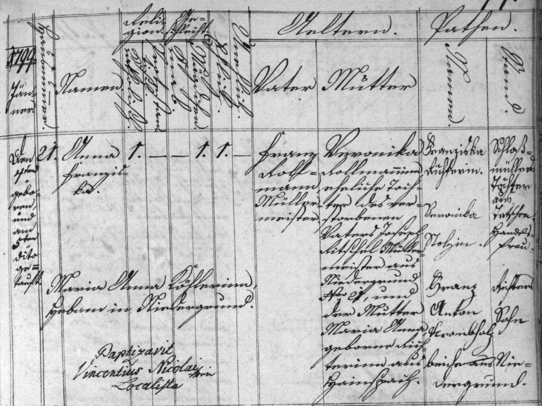 V roce 1771, kdy mlýn dostal čp. 21, zde hospodařil mlynář Josef Ritschel s manželkou Marií Annou. V tomto roce se jim zde narodila dcera Veronika, se kterou se oženil mlynář Franz Rollmann a převzal po Ritschelových mlýn. Matriky zaznamenaly narození jejich dcery Anny Franzisky v dubnu 1799. Mlynářky brzy zemřela, již v říjnu 1801 je po boku Franze Rollmanna uváděna jeho druhá manželka, Maria Anna Seidel, jejíž matka byla rozená Dix z mlynářského rodu ze mlýna zde v čo. 20. V druhém manželství se mlynáři do roku 1820 narodila 12 dětí, 8 dcer a 4 synové, mezi nimi také dědic mlýna Franz Vinzenz v prosinci 1813. (MH)