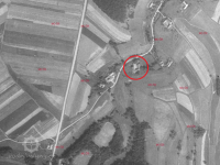 Mlýn stál ještě 1954; 1967 již v troskách.
