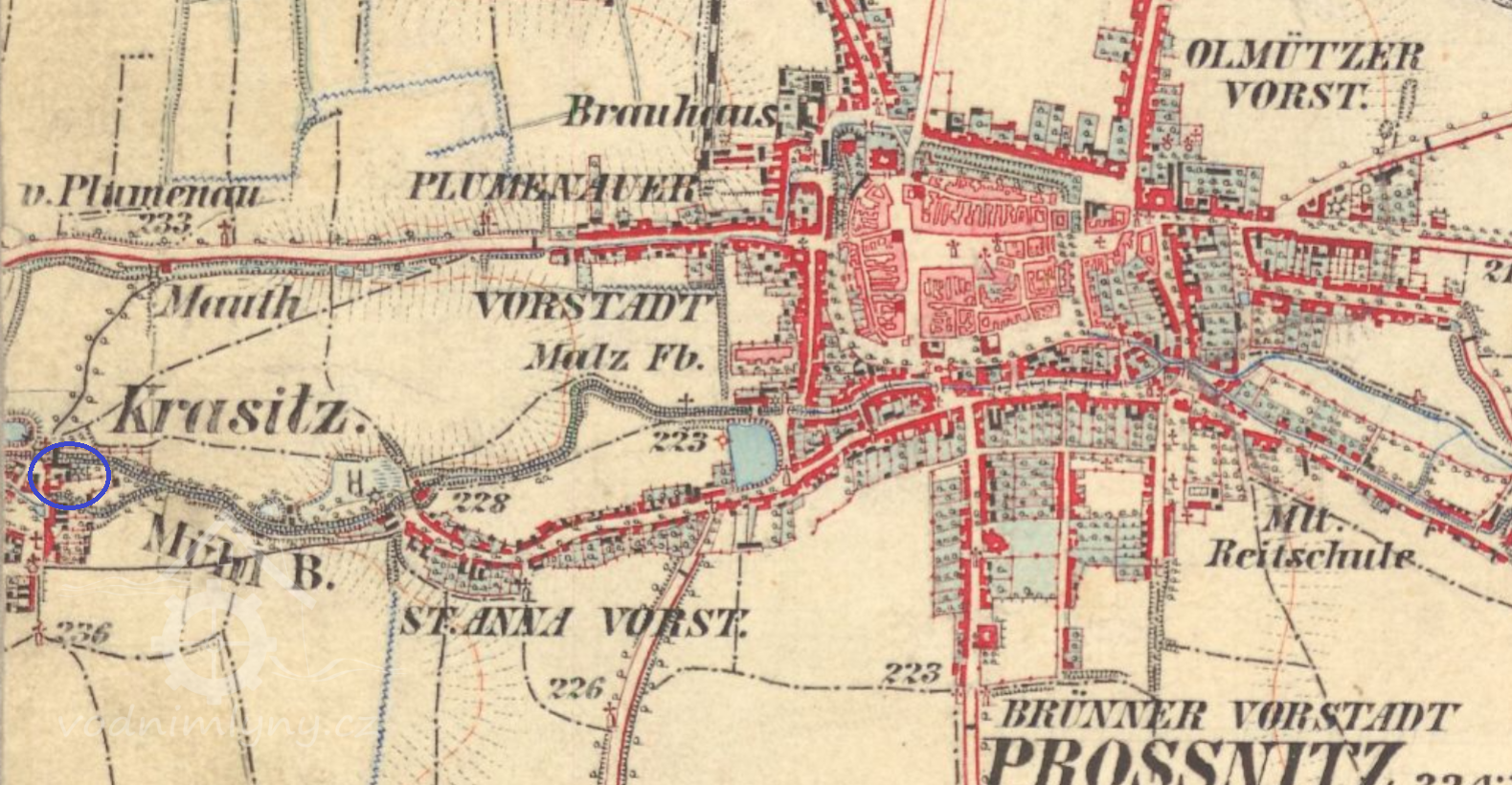 V roce 1896 adaptovala prostějovská kancelář Konečný & Nedělník mlýn na tkalcovnu hedvábných látek vídeňské firmy Jos. Herzig & Comp., vybavení dodala krnovská strojírna A. Hohlbaum & Co. V roce 1915 tkalcovnu koupila prostějovská firma na houněnou obuv Wolf & Franže, a během dvou let zde dala přistavět přádelnu s mykárnou a barevnou. Podnik tak měl zajištěnou i vlastní výrobu materiálů. Všechny budovy navrhli opět Konečný s Nedělníkem, kotel dodala prostějovská strojírna Wichterle a Kovářík, 32 metrů vysoký komín postavilo specializované podnikatelství Ant. Dvořák & K. Fischer z Letek. Po krachu firmy v roce 1933 byla výroba přenesena do Baťových závodů ve Zlíně. Baťův záměr vybudovat v Krasicích velkou pobočku nebyl nakonec realizován. Po druhé světové válce areál získal n. p. Kotva a v roce 1951 n. p. Gala, jenž se zaměřil na výrobu sportovních potřeb – míčů, rukavic, batohů, kabel a dalšího vybavení. V roce 1975 byla dokončena nová pětipodlažní budova (parcela 59/6), navržená roku 1968 zlínským Centroprojektem ve spolupráci s Hutním projektem Veselí nad Moravou. Podnik je stále v provozu.