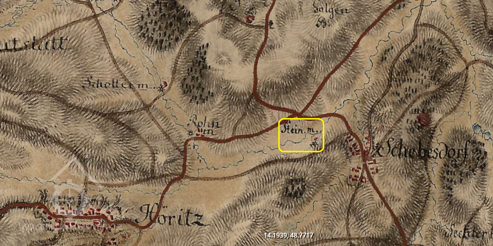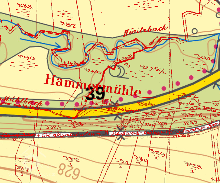 1600 urbář českokrumlovského panství: „Hamrmil a Renmil - na potoce pod městečkem Hořice, dohromady 6 kol moučných korečných. Vejmelné obilí dohromady: 4 korce pšenice, 210 korců žita, 50 korců moučného prachu.