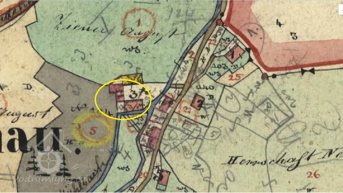 Popis1930 - 1 kolo na svrchní vodu, průtok 0.090 m3/s, spád 5 m, výkon 4 HP.