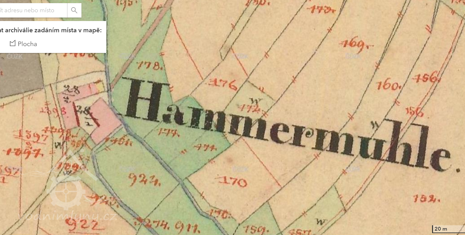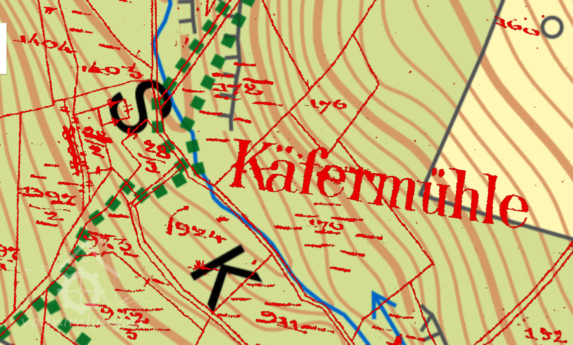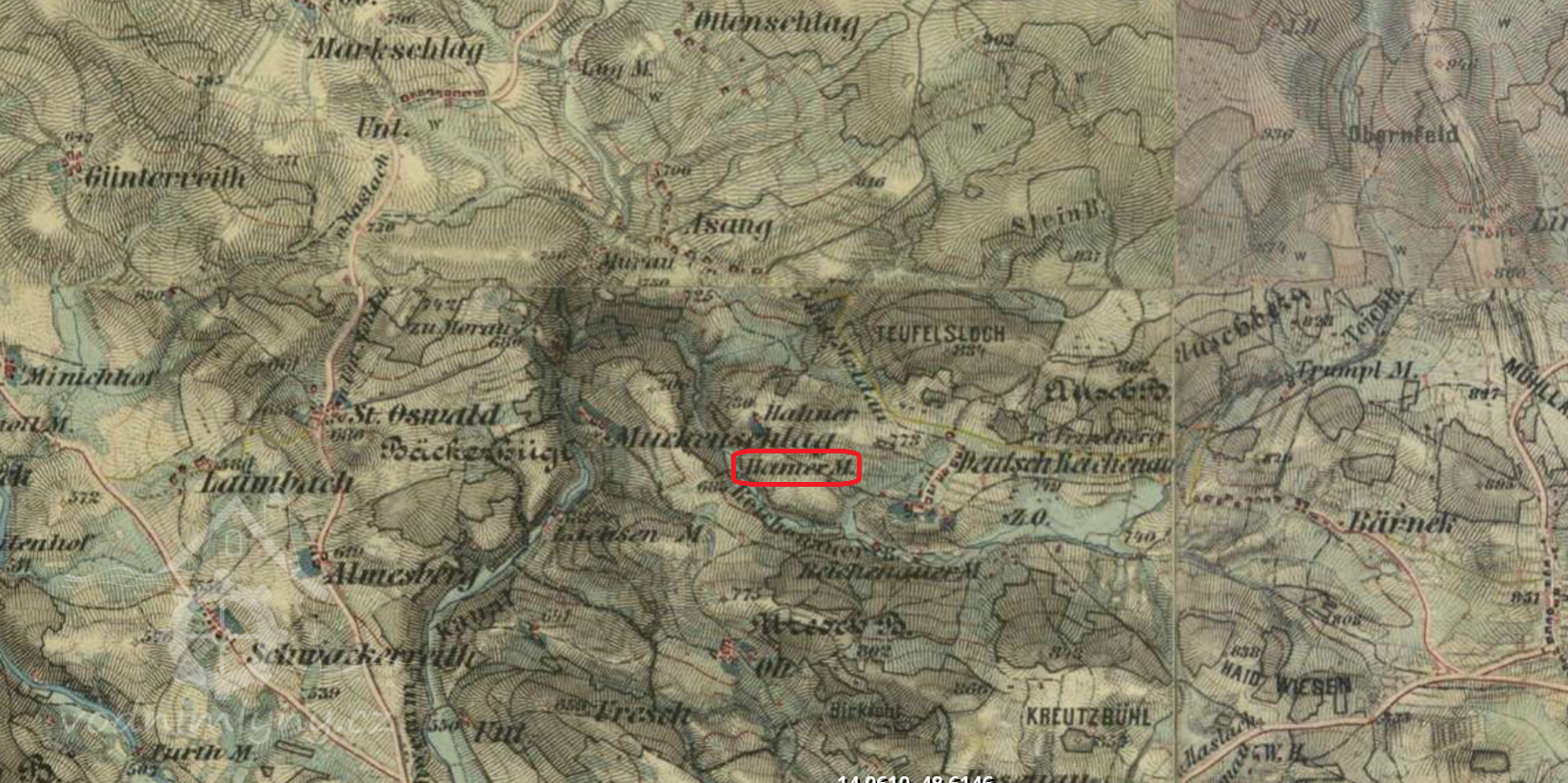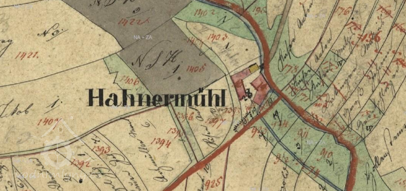 Hamerský, Kuří, Fuchsův, Käferův mlýn; Hammer-, Hahner-, Fuchs-, Käfermühle