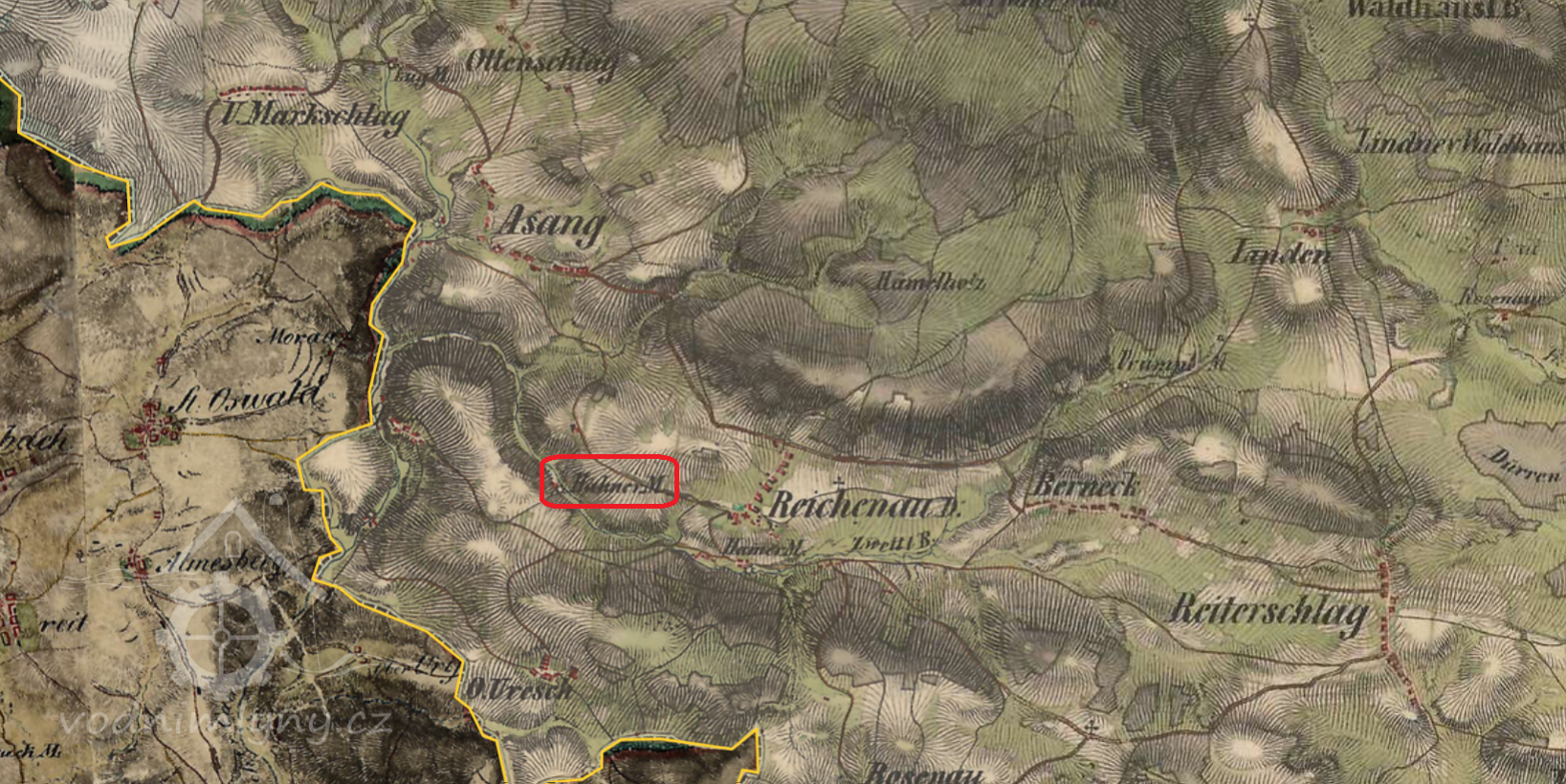Zcela zaniklý mlýn na samotě, přes mlýniště procházel hraniční plot.