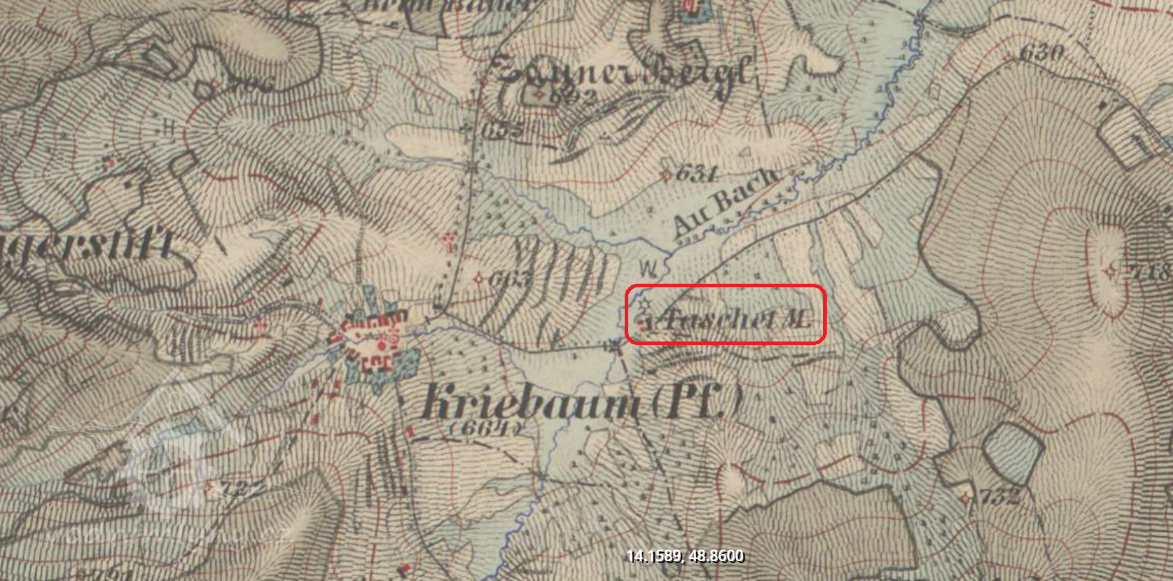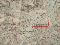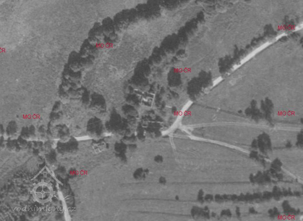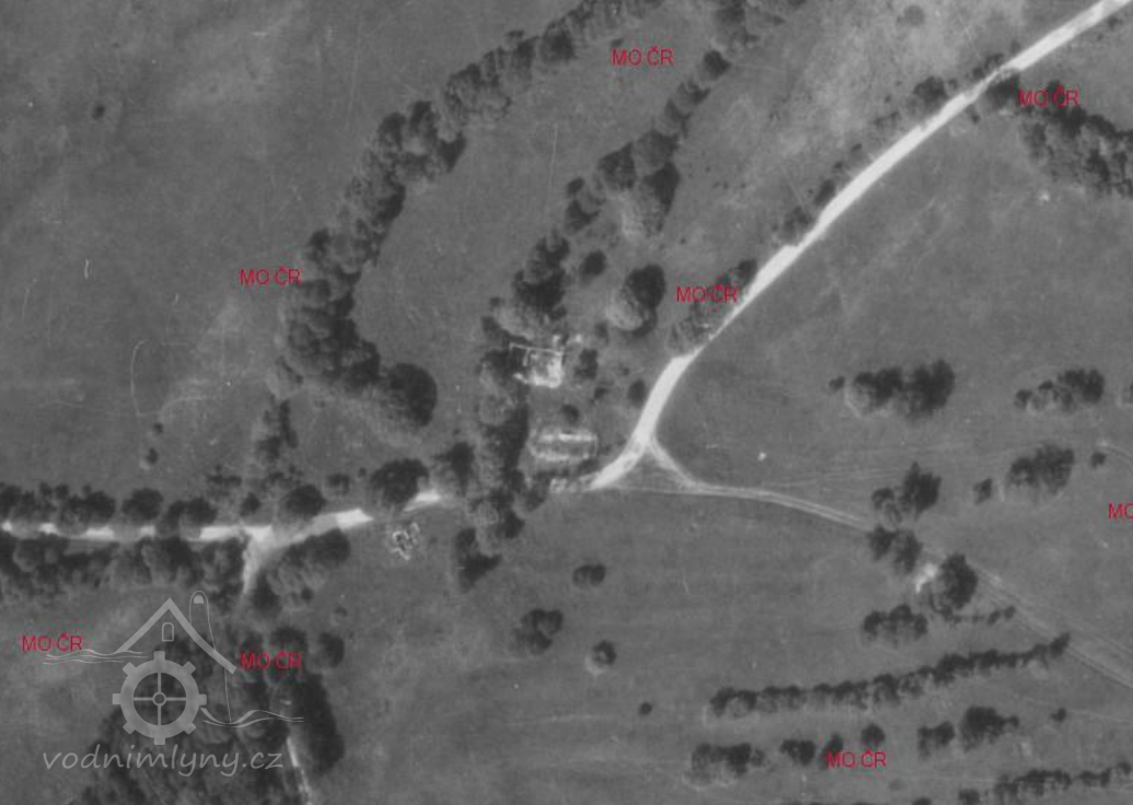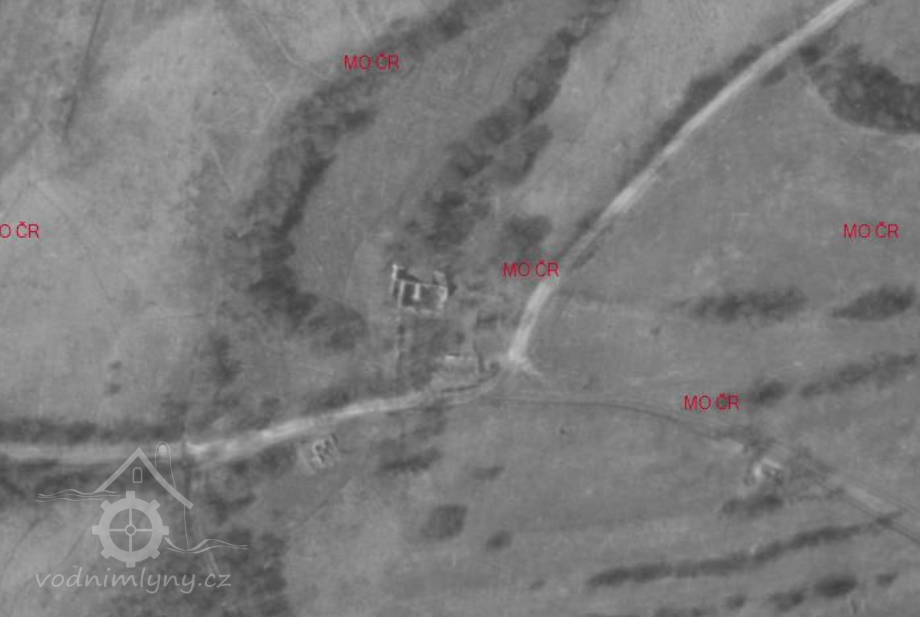 Zaniklý mlýn uvnitř VÚ Boletice, mlýniště není přístupné.