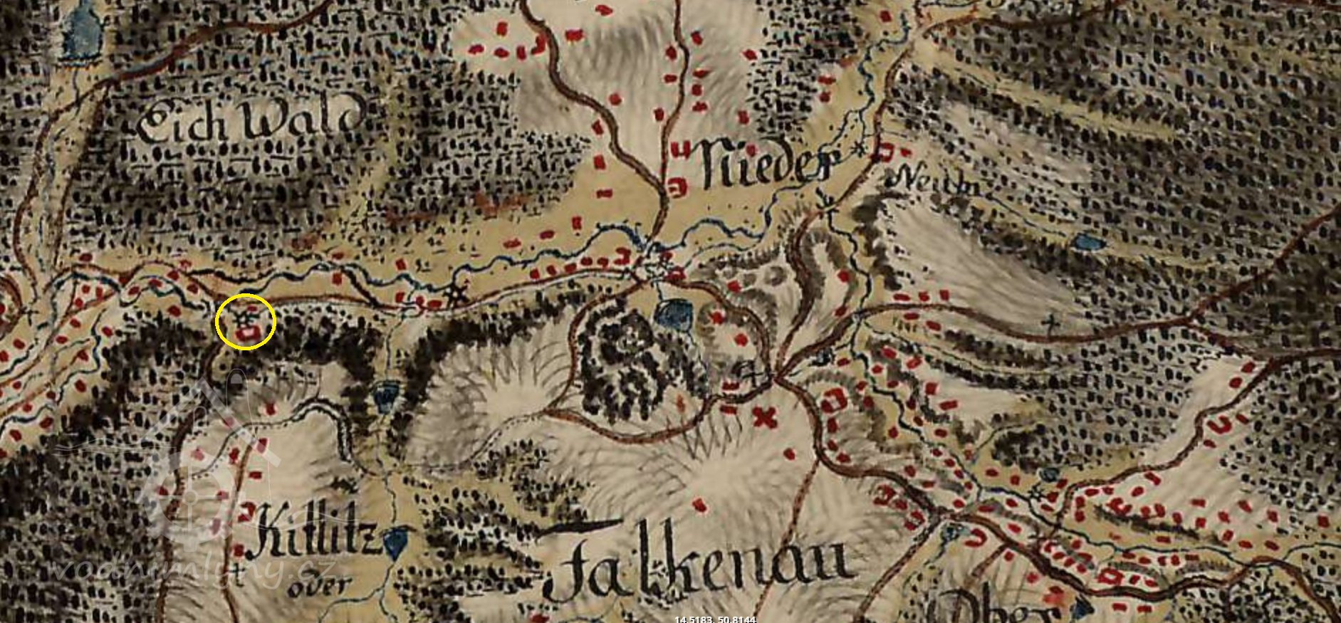 1713 zde Tobiáš Bienert postavil obilní mlýn, který sloužil i hospodářům z Dolního Falknova, mlýn měl i právo svobodného pečení chleba a výčepu piva