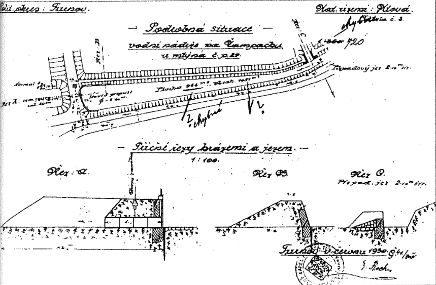 PopisV roce 1930 bylo ve mlýně 1 kolo na vrchní vodu. spád 3,74 m, průtok 158 l/s, výkon 4,47 HP