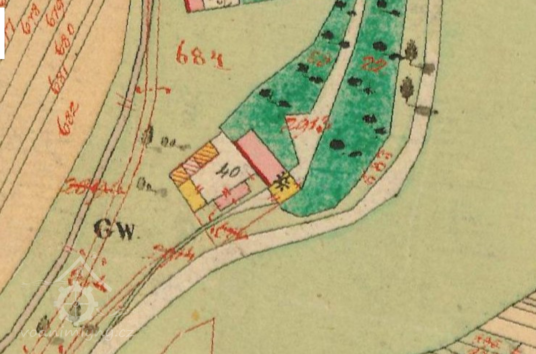 Popis1930: 1 kolo na svrchní vodu, hltnost 0,07 m3/s, spád 6 m, výkon 3,64 HP