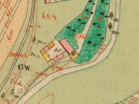 Zaniklý mlýn pod rybníkem, na parcele nová stavba.