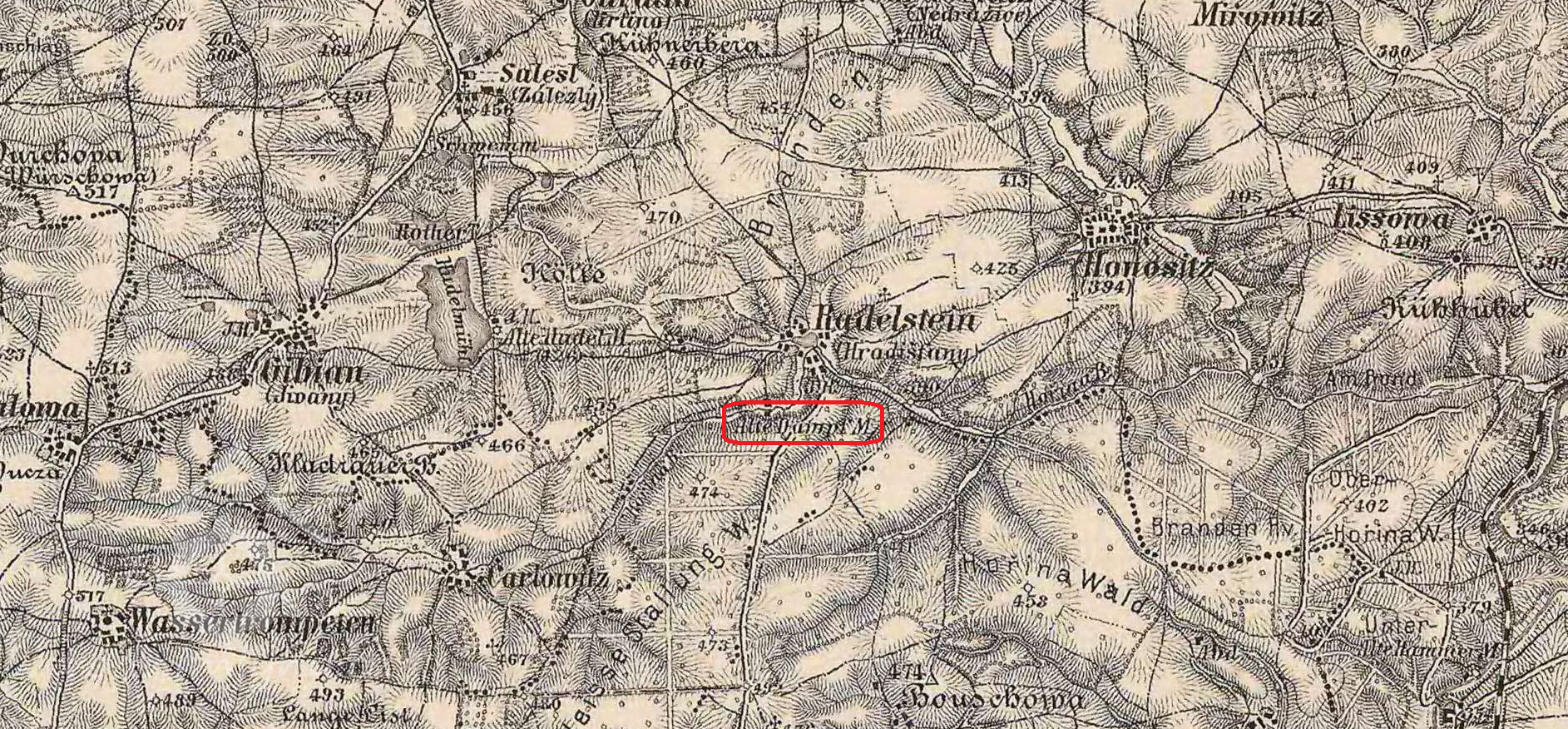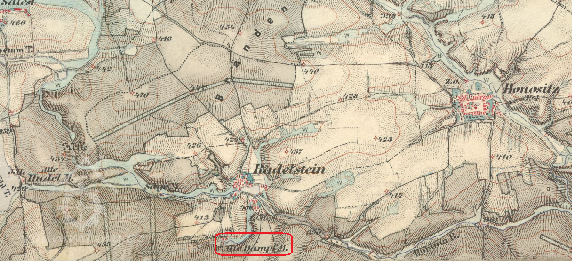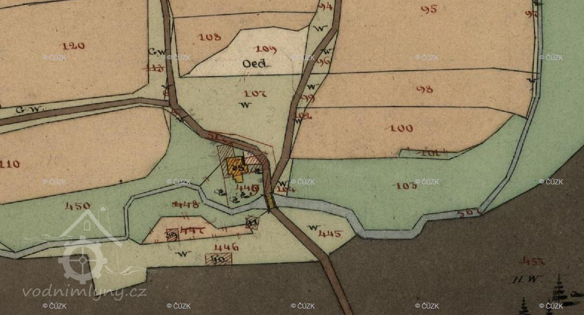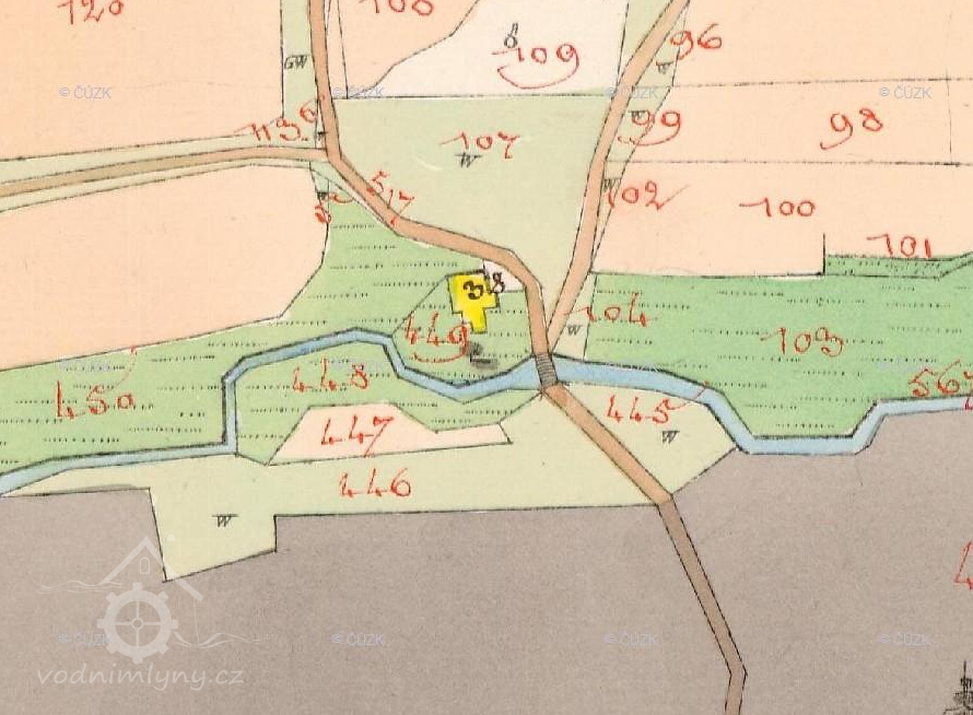 1838 na místě mlýna stála jakási drobná stavba
