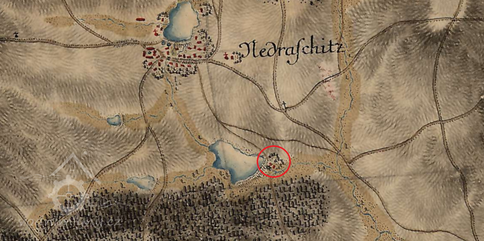 Rybník zachycen pouze na mapě 1. vojenského mapování.