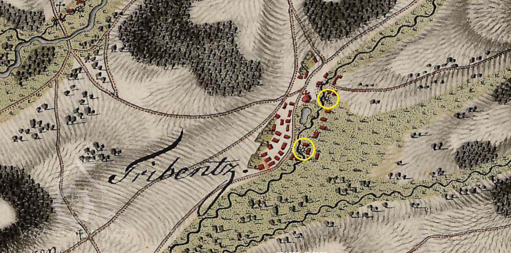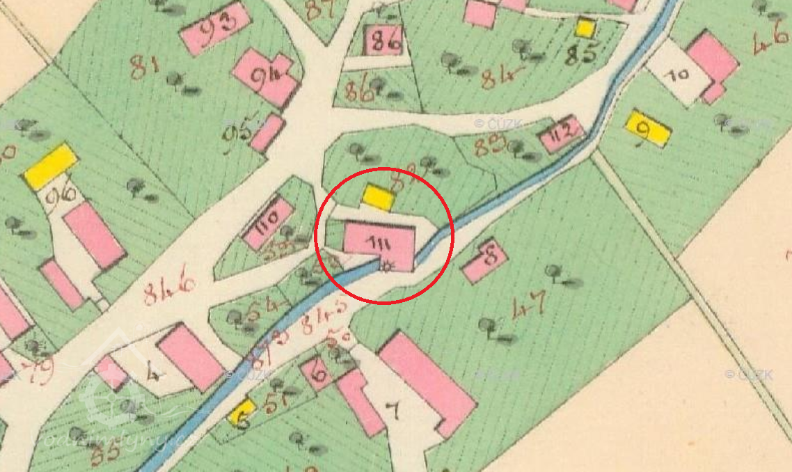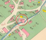 Zaniklý mlýn v centru obce, mlýniště se nachází v zahradě.