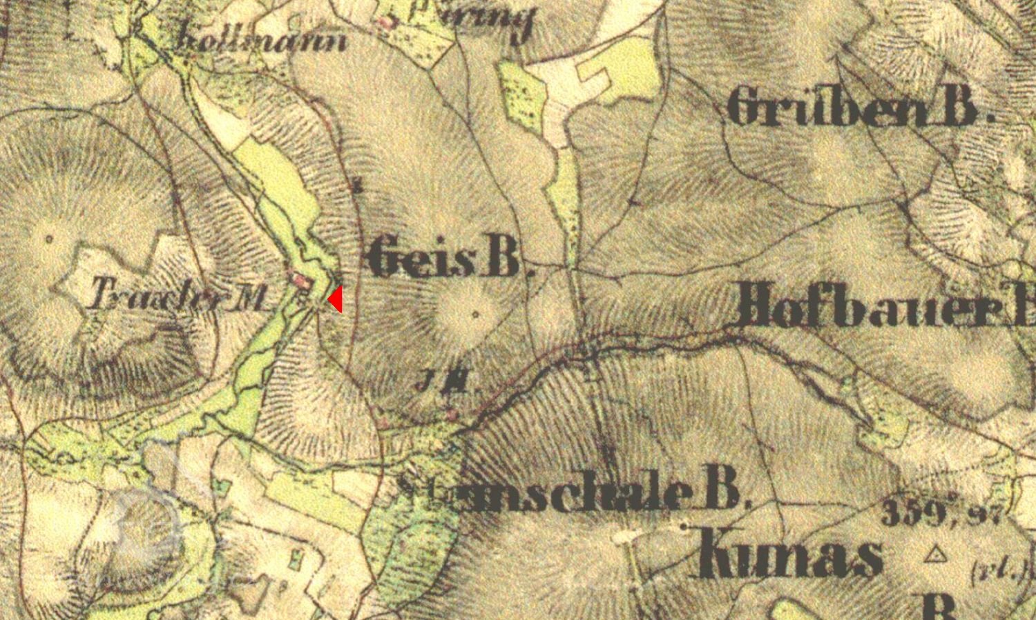 V Berní rule z r.1654 uveden mlynář Šimon Myllner. Má vlastní mlýn o 2 kolech.