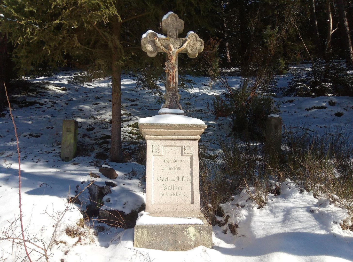 1887 u cesty votivní kříž Karla a Josefa Suttnerových