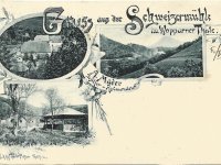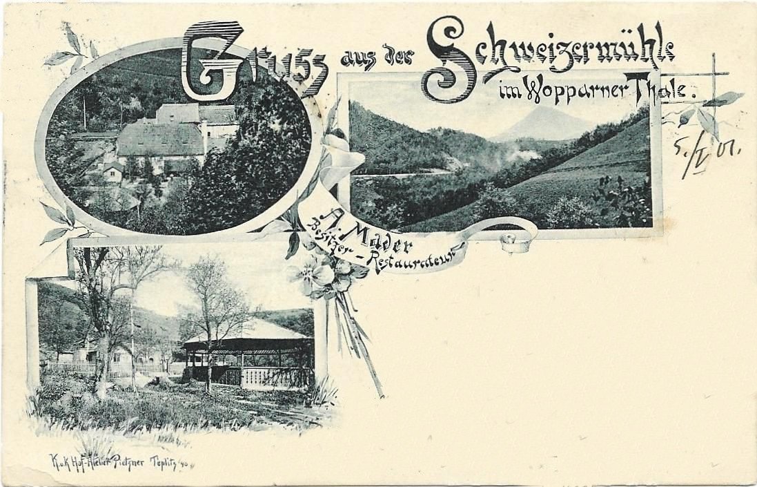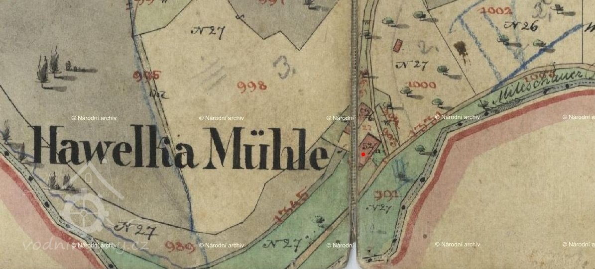 Švýcarský, Havelkův, Mádrův, Císařský mlýn; Schweizermühle, Hawelka Mühle