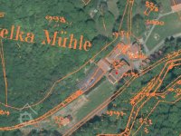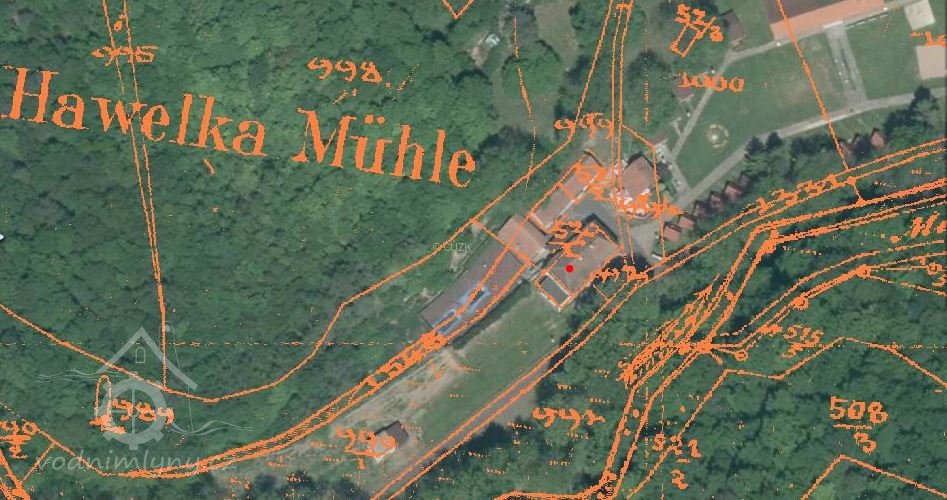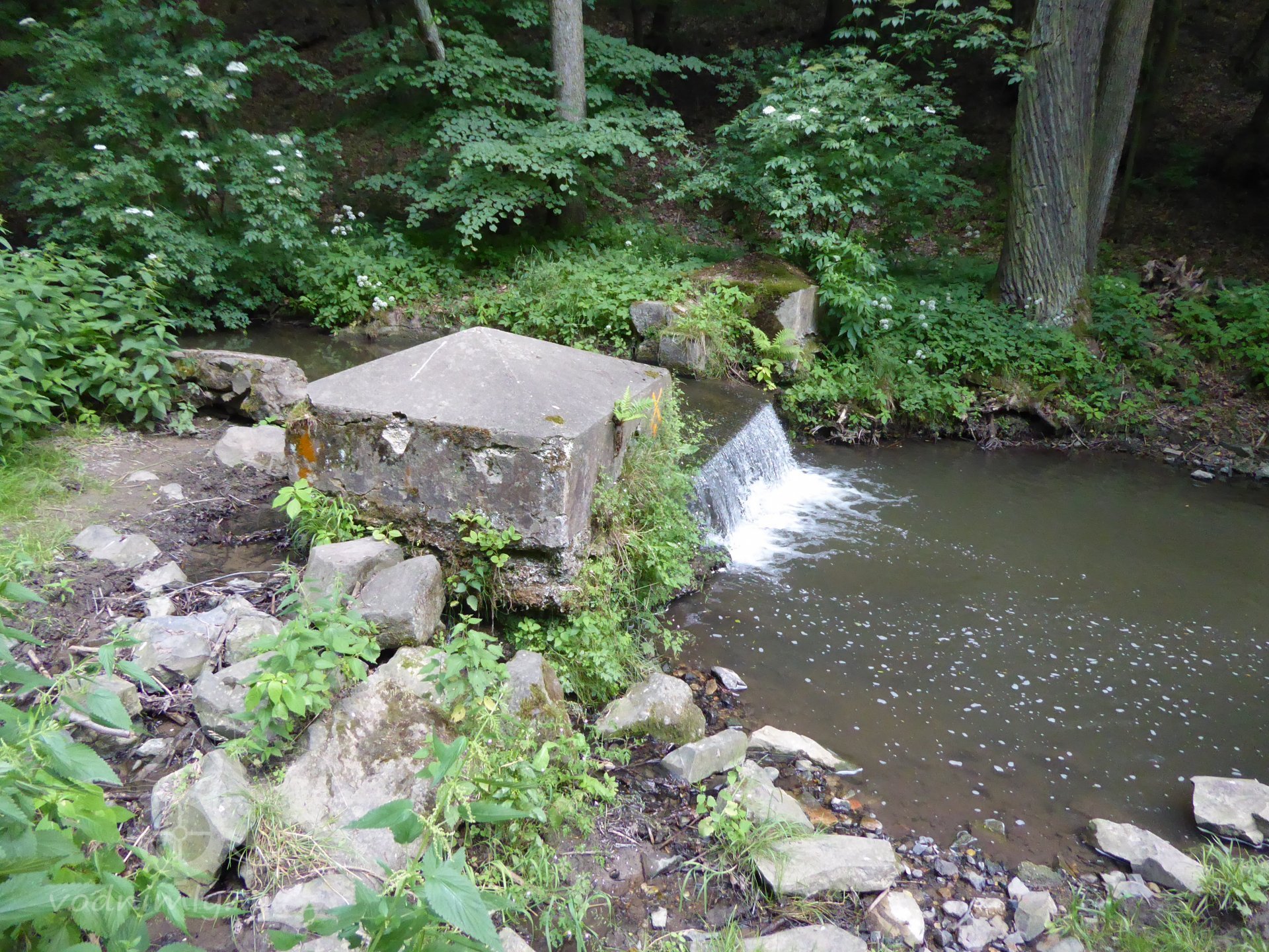 Pod mlýnem je patrný zasypaný a zarostlý odtokový kanál