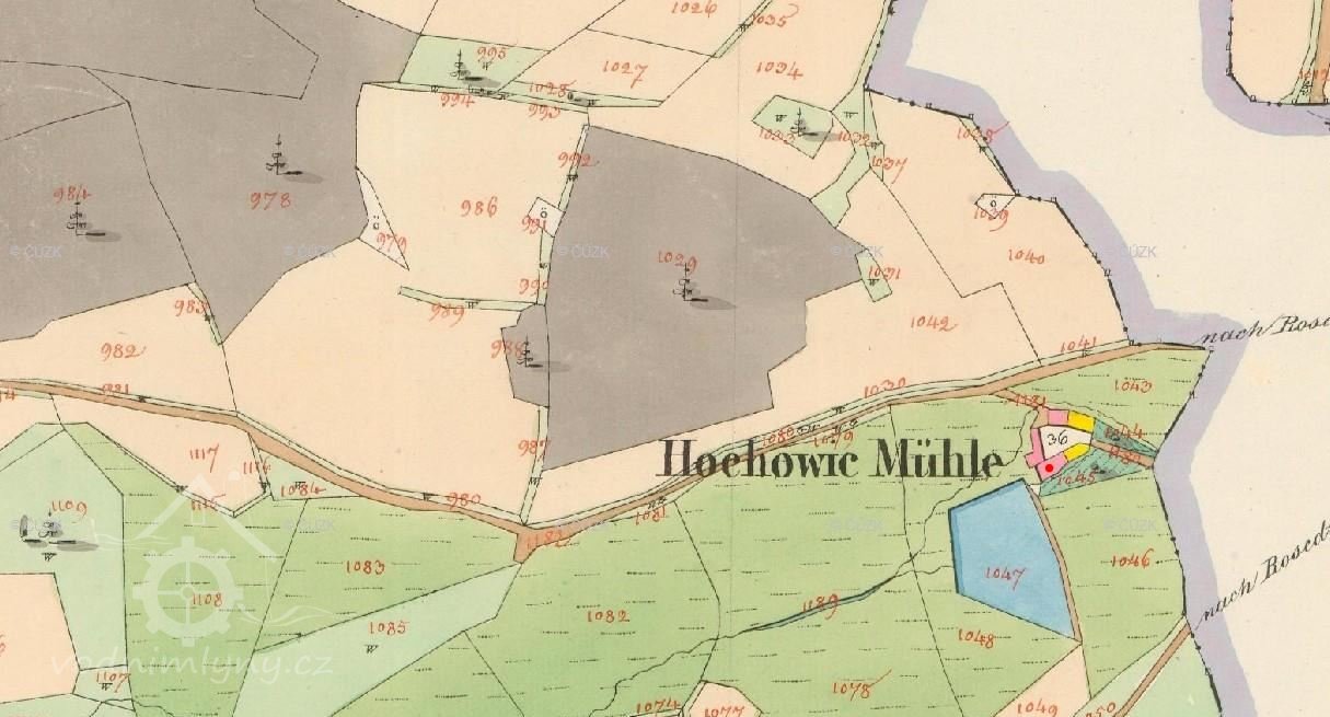 Mlýn je zakreslen již na mapě I. voj. mapování.