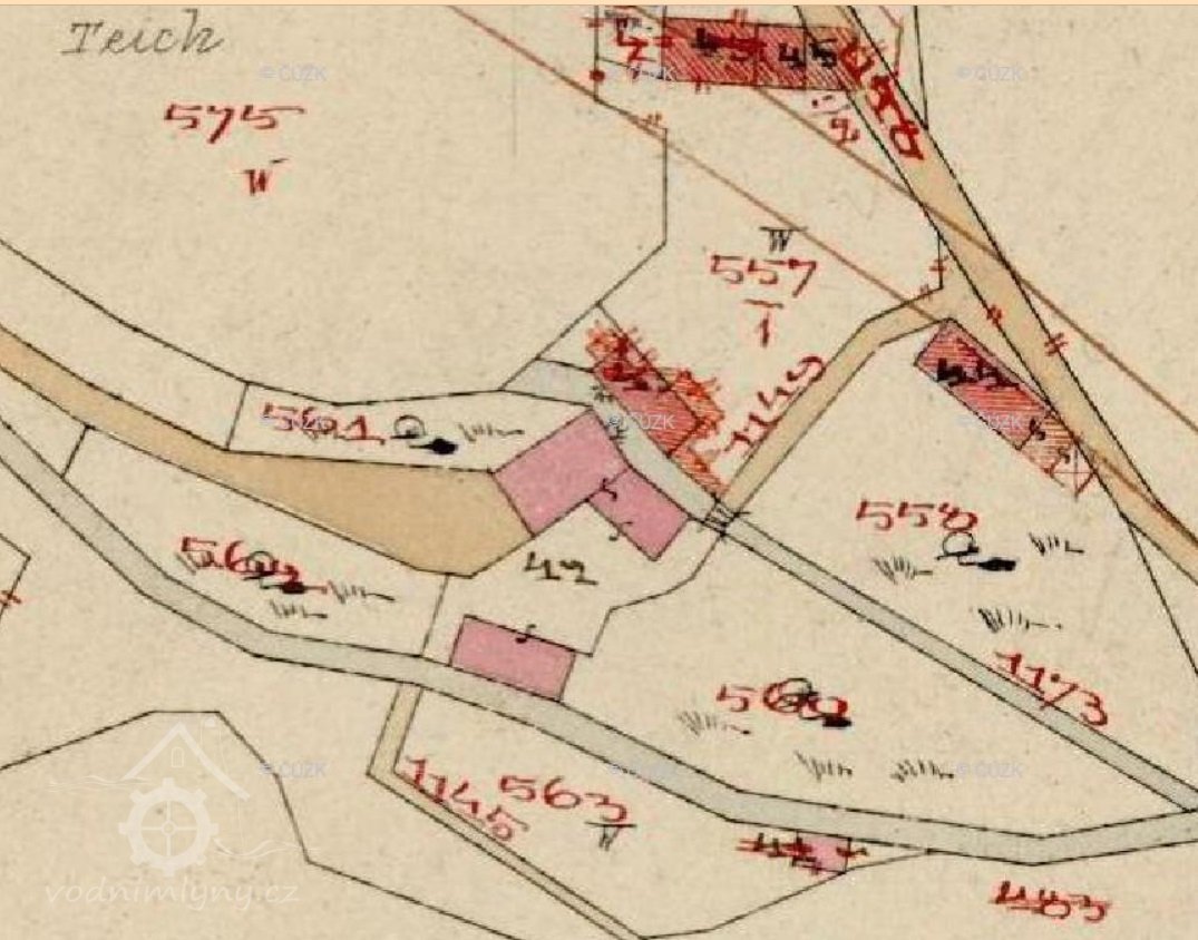 Popis1930: 1 kolo na svrchní vodu, hltnost 0,0967 m3/s, spád 3,6 m, výkon 3,5 HP